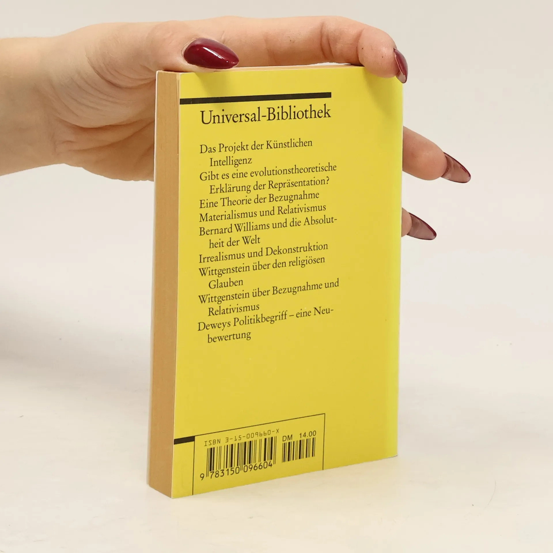 Der Harvard-Professor Hilary Putnam zählt mit Quine, Davidson und Rorty zu den bedeutendsten amerikanischen Philosophen der Gegenwart. Putnam liefert in diesen Essays „eine Diagnose der gegenwärtigen philosophischen Situation“ und weist „die Richtungen, die eine Erneuerung der Philosophie einschlagen müsste“. Die Themen: Das Projekt der künstlichen Intelligenz - Erklärt Evolution Repräsentation? - Eine Referenztheorie - Materialismus und Relativismus - Bernard Williams und die absolute Vorstellung von der Welt - Irrealismus und Dekonstruktion - Wittgenstein über den religiösen Glauben - Wittgenstein über Referenz und Relativismus - Deweys Demokratie neu betrachtet.
