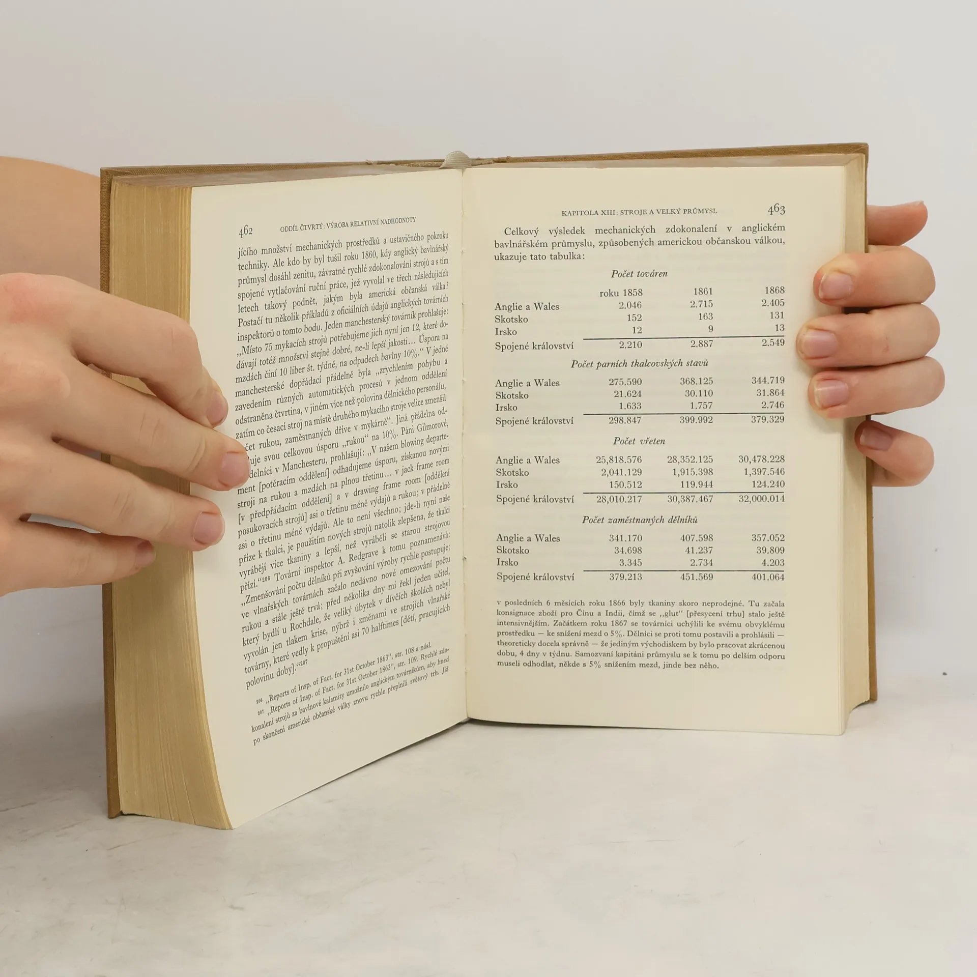 Obsahem knihy je analýza a kritika kapitalistické společnosti a zejména kapitalistického způsobu výroby a distribuce statků. První, nejstudovanější část Kapitálu obsahuje analýzy hodnoty zboží a peněžního oběhu; opět je probírána užitná hodnota a směnná hodnota,vztahy vzniku směnné hodnoty a pracovní doby dělníka, přeměnu práce v peníze apod. Marx zavádí pojem „nadpráce“: dělník musí odpracovat určitou nutnou pracovní dobu, aby vznikla hodnota, z níž uživí sebe a rodinu; poté však musí pracovat dále, aby uživil také kapitalistu. Z této „nadpráce“ tedy vzniká nadhodnota, která je však dělníkovi odcizena, neboť si ji přivlastní kapitalista, a tím dělníka vykořisťuje. Marx se také věnuje problému přelidnění, dělby práce a strojové výroby, která vede k prodlužování pracovní doby, neboť stroj je nejefektivnější, běží-li stále. Vlastnosti zboží jsou podle Marxe vysvětlitelné jedině ze vzájemných vztahů mezi výrobci, nikoliv ze zboží samého: zatímco si lidé myslí, že hodnota zboží — např. zlata — je objektivně danou vlastností předmětu, ve skutečnosti je závislá na sociálně-ekonomických vztazích. Buržoazní společnost, která připisuje zboží nevnímatelné vlastnosti a hodnoty a „uctívá“ je, se tak dopouští „zbožního fetišismu“, který je přirovnáván k uctívání svatých ostatků.