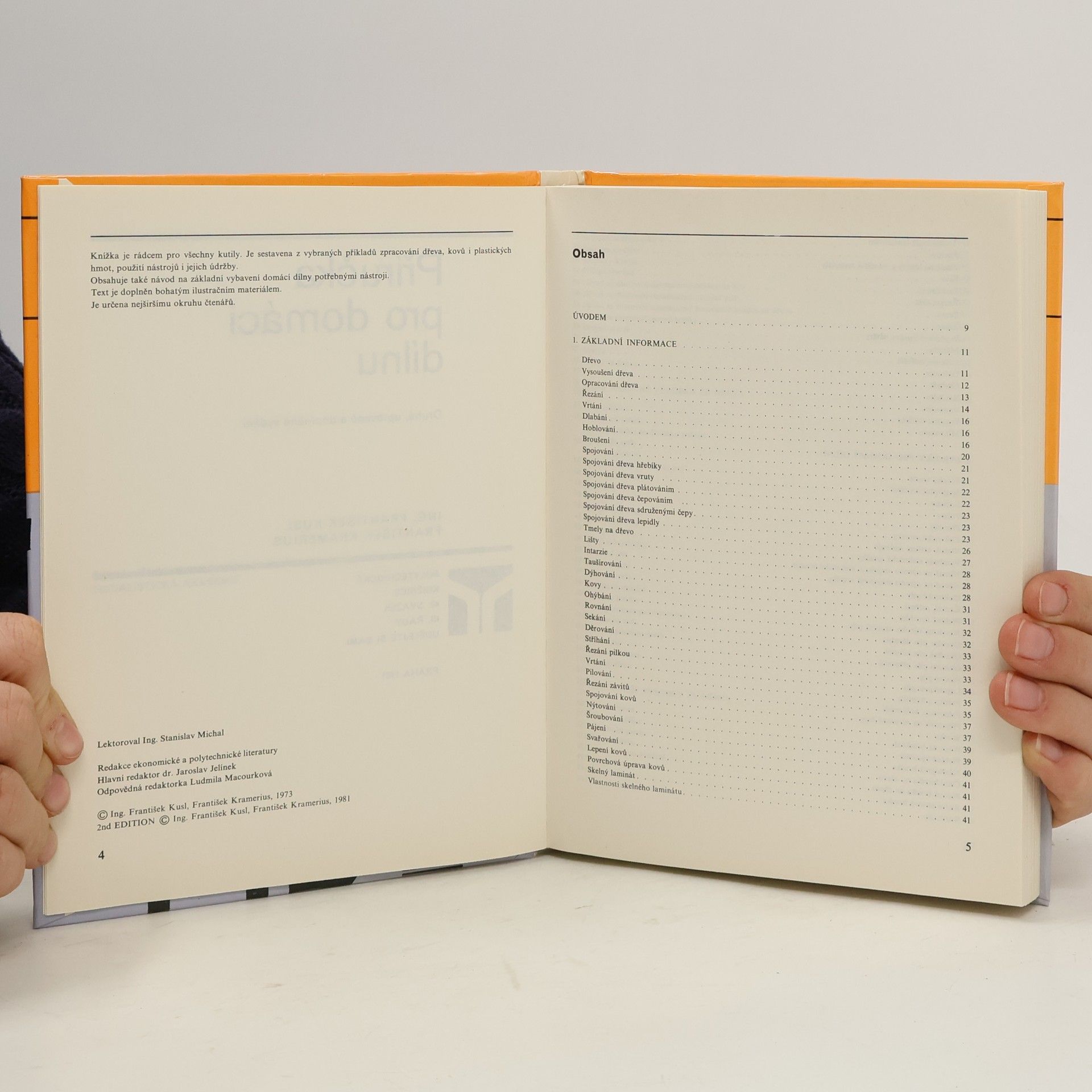 Knížka je rádcem pro všechny kutily. Je sestavena z vybraných příkladů zpracování dřeva, kovů i plastických hmot, použití nástrojů i jejich údržby. Obsahuje také návod na základní vybavení domácí dílny potřebnými nástroji. Text je doplněn bohatým ilustračním materiálem. Je určena nejširšímu okruhu čtenářů.