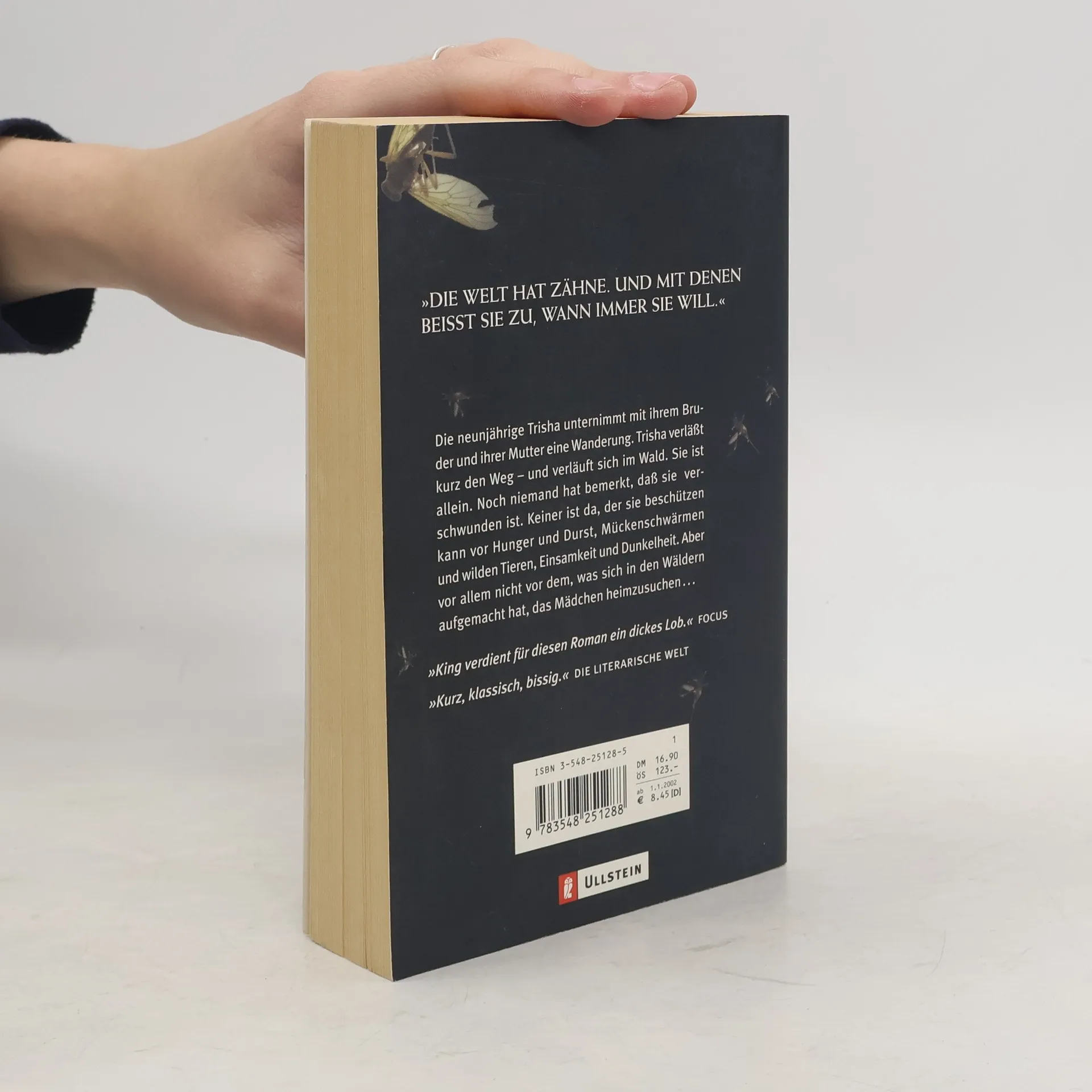 »Die Welt hat Zähne. Und mit denen beißt sie zu, wann immer sie will.« Die neunjährige Trisha unternimmt mit ihrem Bruder und ihrer Mutter eine Wanderung. Trisha verlässt kurz den Weg - und verläuft sich im Wald. Sie ist allein. Noch niemand hat bemerkt, dass sie verschwunden ist. Keiner ist da, der sie beschützen kann - vor Hunger und Durst, Mückenschwärmen und wilden Tieren, Einsamkeit und Dunkelheit. Aber vor allem nicht vor dem, was sich in den Wäldern aufgemacht hat, die Neunjährige heimzusuchen...