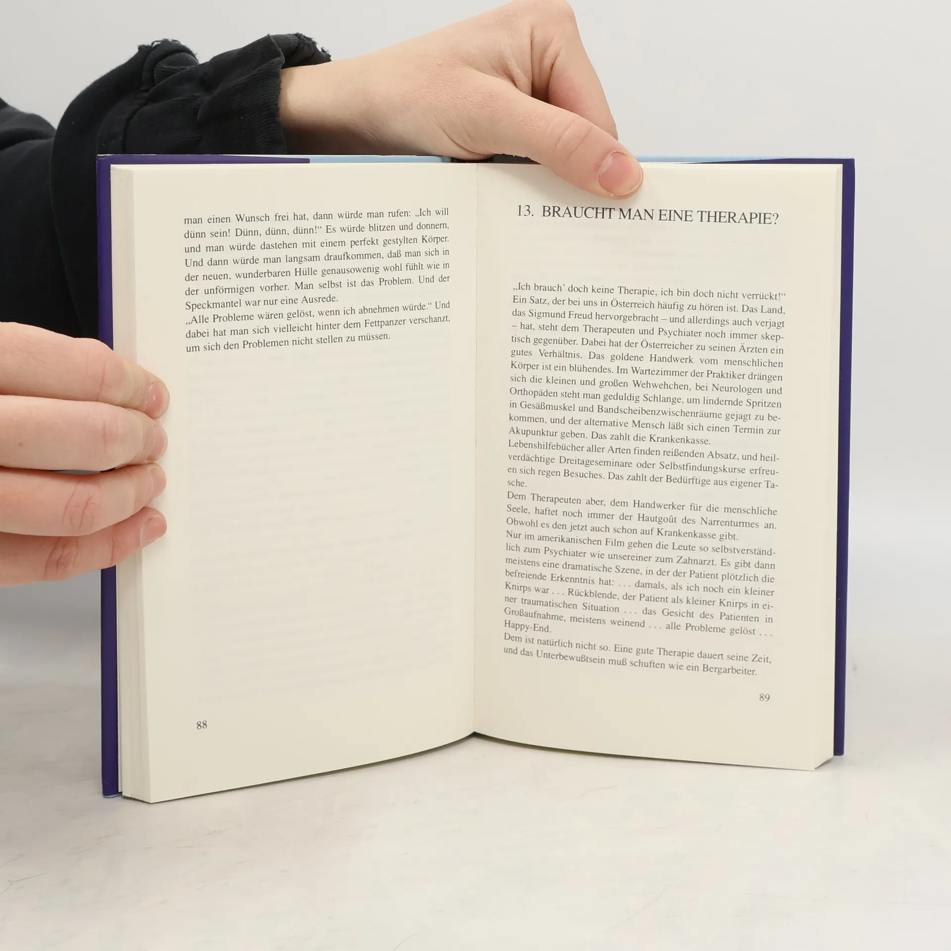 Roter Faden ist die persönliche Geschichte der Autorin als Bulimiekranke: Ihre Beziehung zu den Eltern, ihre Freundinnen, sie selbst als Schauspielerin und stets gegenwärtig, das schlanke Schönheitsideal, Diäten und Appetitzügler, Jahre der Selbstzerstörung und letztendlich ihre Befreiung durch Therapie, denn ohne Hilfe wird man diese Krankheit nicht los. Deshalb endet das Buch mit einer ausführlichen Information über die verschiedenen Therapiemöglichkeiten und einer Liste der Anlaufstellen für Eßgestörte