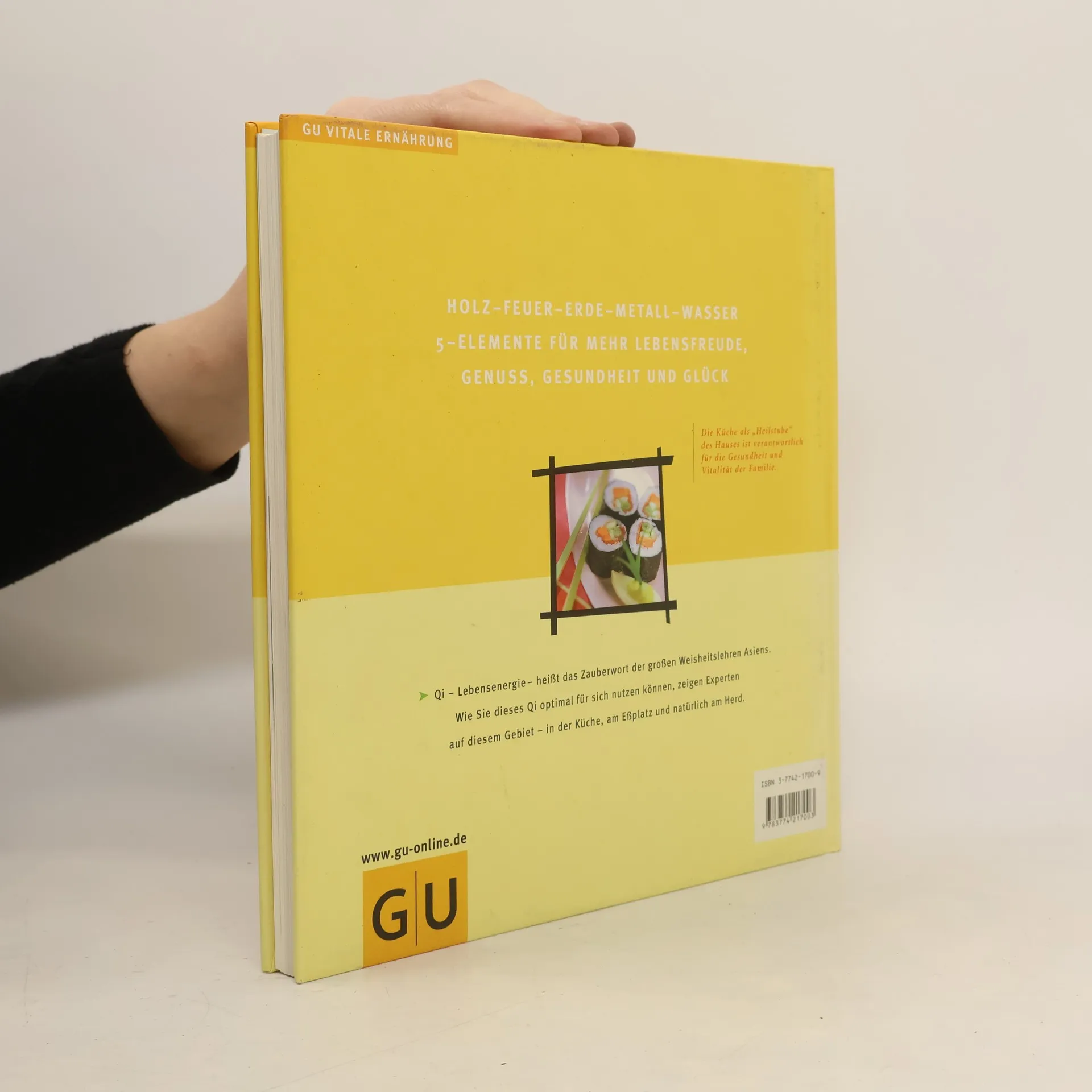 Mehr Vitalität und Gesundheit fürs Leben durch mehr Energie (chi) in der Küche und am Eßplatz. Einfache Tips und Tricks zur Küchengestaltung nach den Prinzipien des Feng Shui zur Verbesserung von Harmonie und wohltuender Energie im Raum. Durch passende Farben, Materialien, Formen und Belüftung. Ergänzt wird diese Weisheitslehre durch eine Ernährung nach der tradtionellen 5-Elemente-Lehre. Mit europäisch schmeckenden Gerichten, die Körper und Seele harmonisieren und die Arbeit der Organe hilfreich unterstützen.