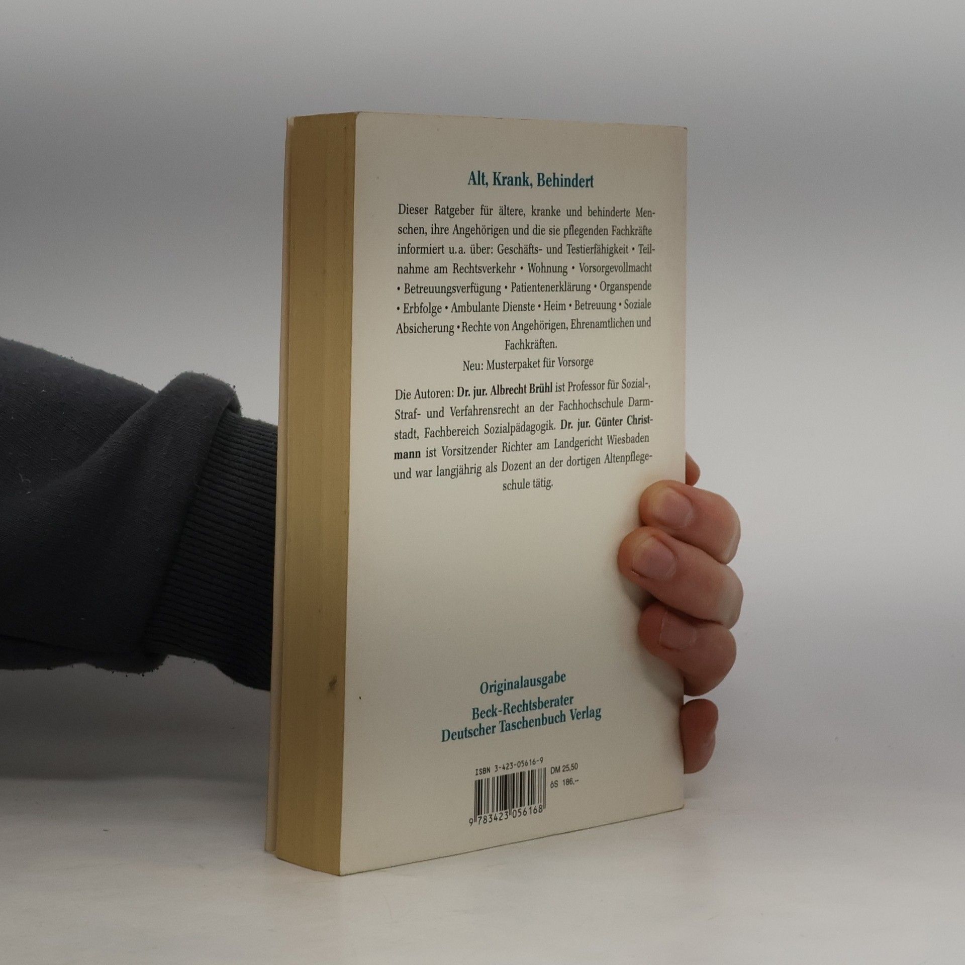 Dieser Ratgeber für ältere, kranke und behinderte Menschen, ihre Angehörigen und die sie pflegenden Fachkräfte informiert u. a. über: Geschäfts- und Testierfähigkeit · Teilnahme am Rechtsverkehr · Wohnung · Vorsorgevollmacht · Betreuungsverfügung · Patientenerklärung · Organspende · Erbfolge · Ambulante Dienste · Heim · Betreuung · Soziale Absicherung · Rechte von Angehörigen, Ehrenamtlichen und Fachkräften. Neu: Musterpaket für Vorsorge