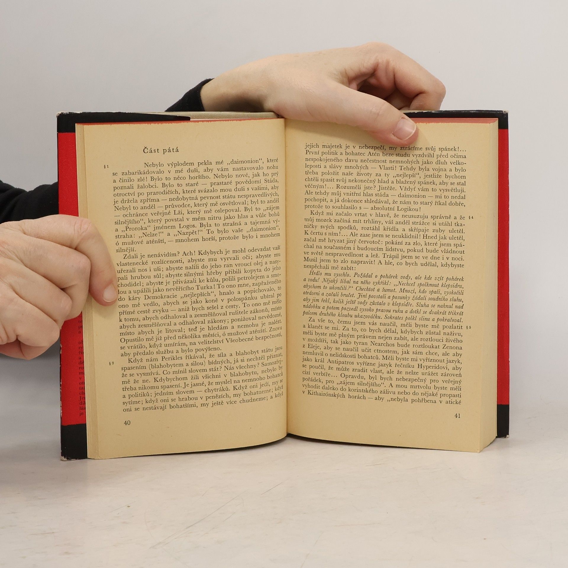Dvě prozaická díla, z nichž první (Pravdivá obrana Sokratova) znamená vrchol prozaického umění řeckého spisovatele (nar. 1884). Je satirou na současné poměry, promítnutou na pozadí antického světa. V druhém (Diktátoři), napsaném v době napadení Řecka italskými fašisty, před čtenářemv plné nahotě svých násilnických činů a povah defiluji a k srovnání s přítomnými diktátory vybízejí čelní vládci světovládného Říma: Tiberius, Kaligula, Klaudius, Nero, Vespasián, Titus aj.