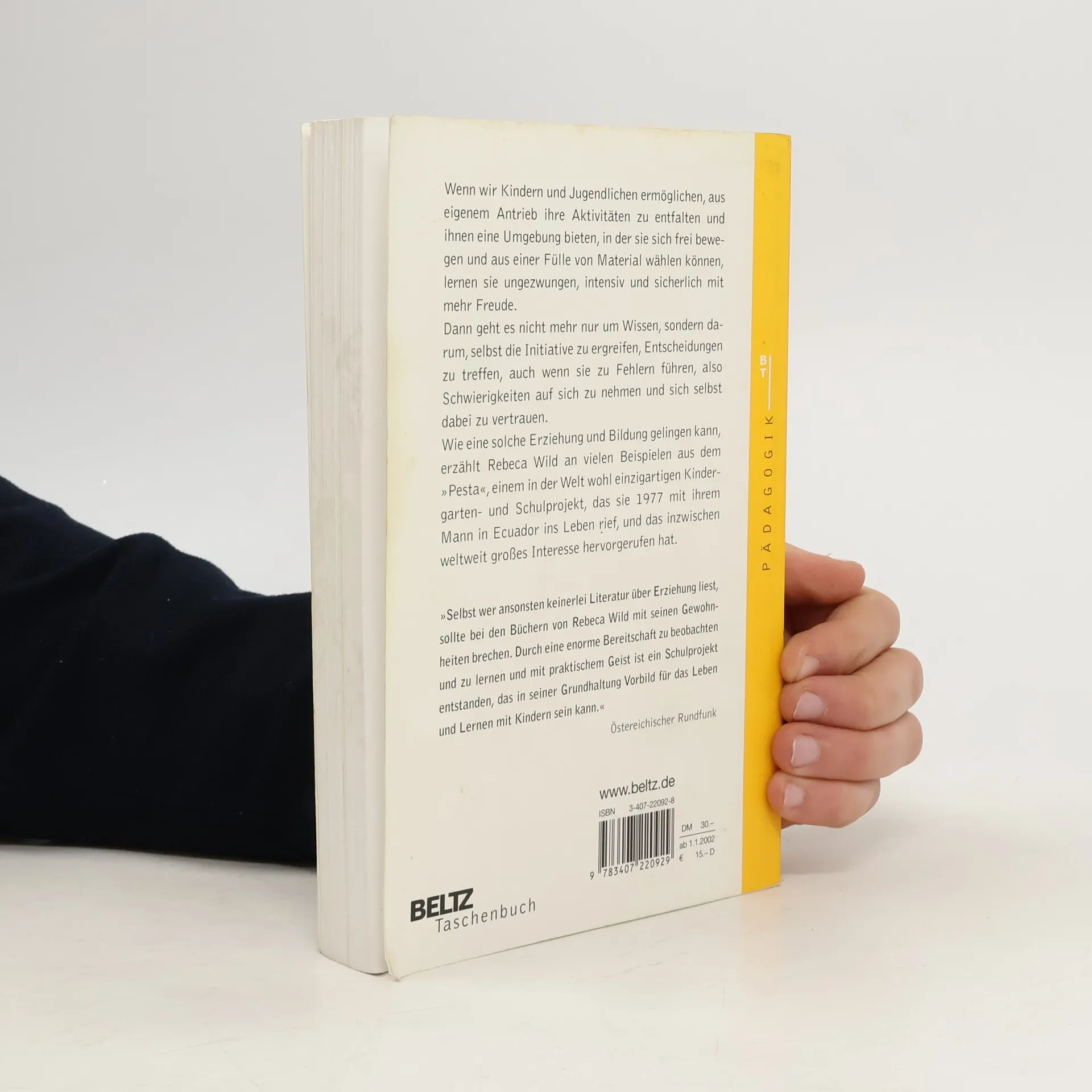 20 Jahre nach Erscheinen des Buches „Erziehung zum Sein“ schreibt Rebeca Wild über die weitere Entwicklung einer in der Welt wohl einzigartigen Schule, die sie 1977 zusammen mit ihrem Mann Mauricio in Ecuador gegründet hat. Im „Pesta“ geht es vor allem darum, wie eine für die Kinder und ihre Reifungs- und Entwicklungsschritte „vorbereitete Umgebung“ etwas anderes anbieten kann als die herkömmliche Schule. Denn Kinder und Jugendliche müssen nicht belehrt werden, sondern brauchen eine Umgebung, die ihren emotionalen und mentalen Wachstumsprozessen entspricht. Nicht der Versuch, den Kindern lediglich „Wissen“ einzutrichtern, sondern der Respekt vor der Individualität eines jeden Kindes und vor seinem inneren Entwicklungsplan liegt dem Ansatz zugrunde, der natürlich die Methoden Maria Montessoris einbezieht, sich aber auch auf so unterschiedliche Autoren wie Piaget, Hoimar von Ditfurth, Illich, Neill oder Maturana bezieht.