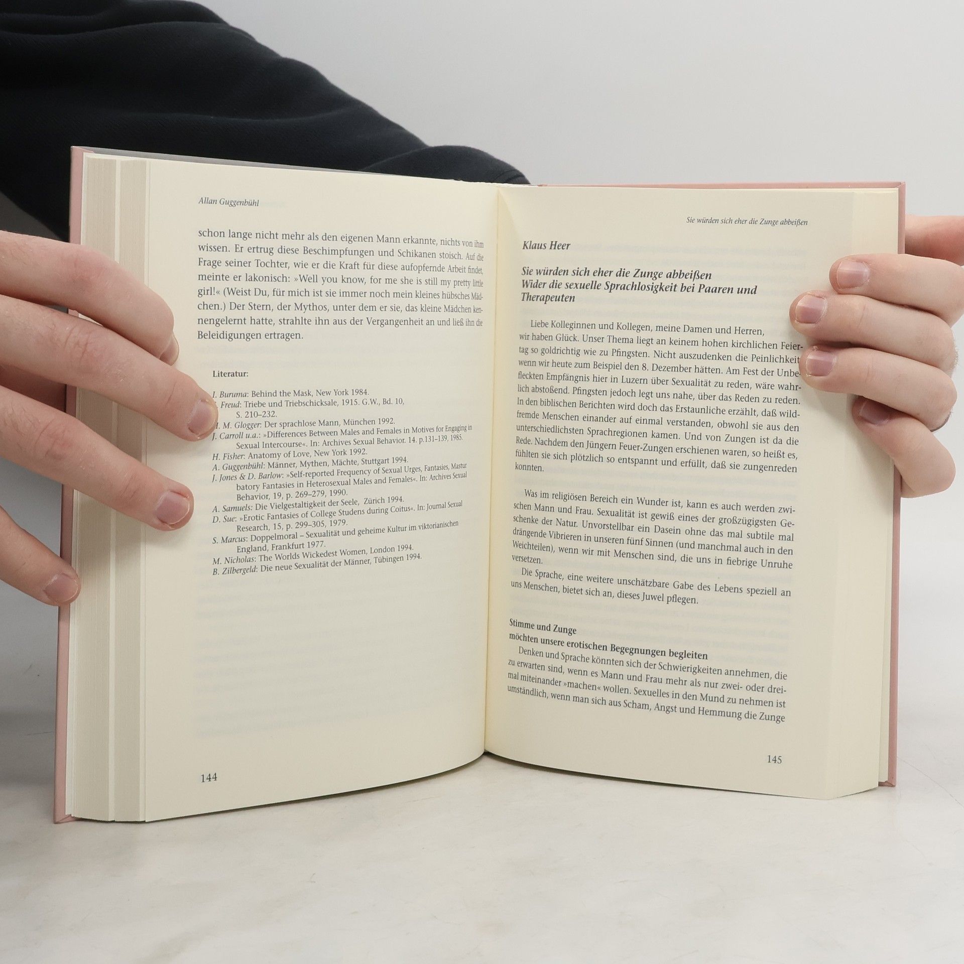 Diese Beiträge bieten eine Vielzahl von Anregungen für den bewussten Umgang mit den Kräften der Sinnlichkeit und Sexualität, ohne die unser Leben gar nicht denkbar wäre. 2. gebunden Auflage! Autoren und Beiträge Andrés Baliarda = Über den Umgang mit dem launischen Gott Eros Mona Lisa Boyesen = Erogenetik – Neue Dimensionen in der Biodynamischen Köperpsychotherapie Dieter Duhm = Krankheit in der Liebe und Perspektiven der Heilung Caecilia Weber-Ebeling & Karl Geck = Sexualität und Glaubenssätze - Lust und Frust des Felsenfesten David Gilmore = Die Kraft des Lachens - Das authentische Spiel mit der Sinnlichkeit Allan Guggenbühl = Vertrauen in die Fremdheit - Die Sexualität des Mannes zwischen Beziehungsfurcht und mythischer Grandiosität Klaus Heer = Sie würden sich eher die Zunge abbeißen - Wider die sexuelle Sprachlosigkeit bei Paaren und Therapeuten August E. Hohler = Schlagen oder Streicheln - Über das Prinzip Zärtlichkeit Renu Li = Das Heilende Tao - Ein System der Selbstheilung nach Meister Mantak Chia Amy & Arny Mindell = Traumprozeß, Körperarbeit und Politik Margarete Mitscherlich-Nielsen = Identität, Geschlecht und Ideologie Julia Onken = Sackgase Sexualität Rainer Pervöltz = Die Bedeutsamkeit des Unzüchtigen und der fruchtbare Umgang damit im Leben und in der Therapie