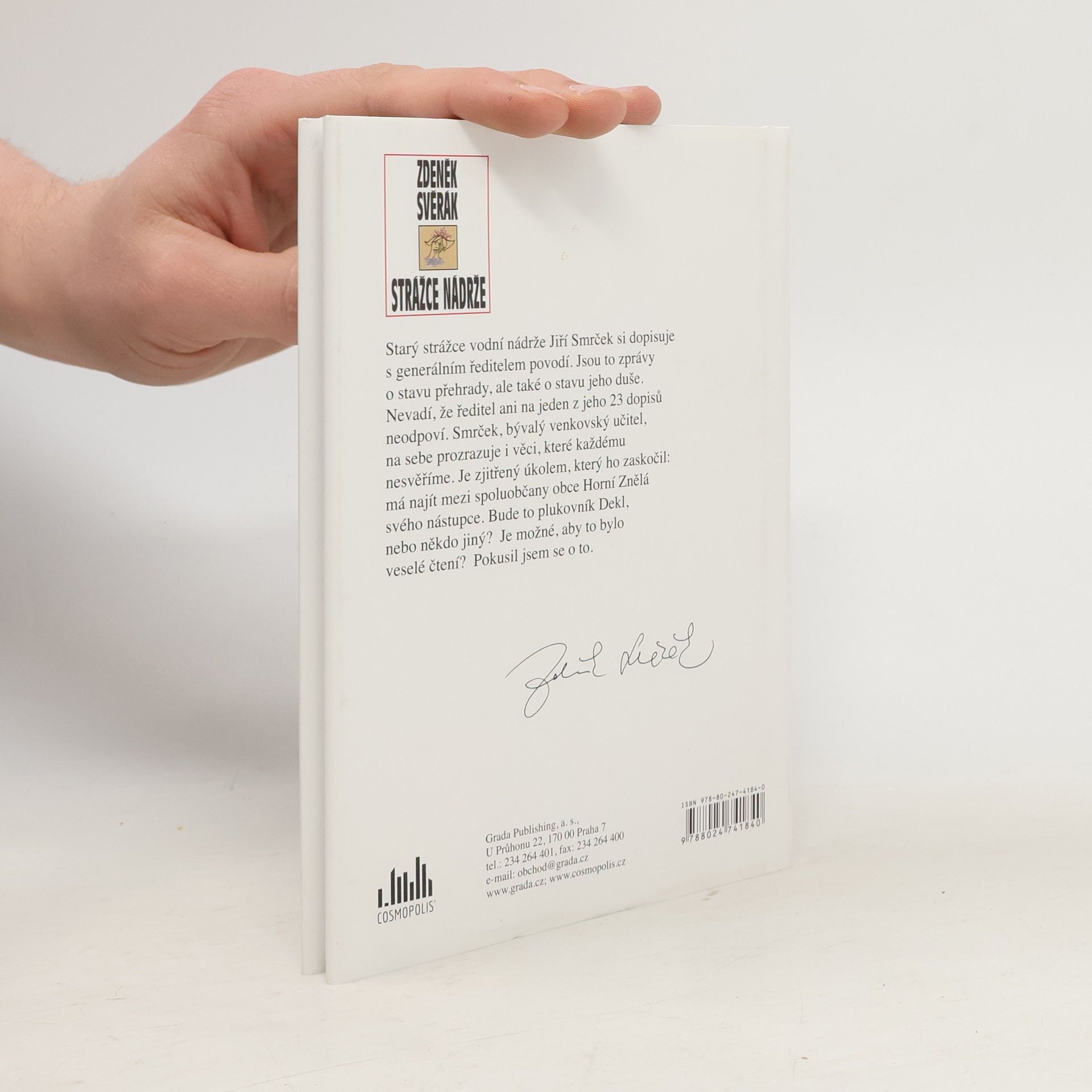 Starý strážce vodní nádrže Jiří Smrček si dopisuje s generálním ředitelem povodí. Jsou to zprávy o stavu přehrady, ale také o stavu jeho duše. Nevadí, že ředitel ani na jeden z jeho 23 dopisů neodpoví. Smrček, bývalý venkovský učitel, na sebe prozrazuje i věci, které každému nesvěříme. Je zjitřený úkolem, který ho zaskočil: má najít mezi spoluobčany obce Horní Znělá svého nástupce. Bude to plukovník Dekl, nebo někdo jiný? Je možné, aby to bylo veselé čtení? Pokusil jsem se o to. Z. Svěrák k novým textům dodává: „Celý život nosím u sebe notýsek, kam si zapisuji nejrůznější krátké poznámky o tom, co mi přijde zajímavé, co jsem viděl, prožil nebo co mi někdo vyprávěl. Nedávno jsem si řekl, že bych se na to měl zpětně podívat a události si připomenout, případně se z těch poznámek inspirovat. Když jsem je začal pročítat, tak jsem zjistil, že téměř 90 % je nepoužitelných, no a z toho zbytku je tato nová kniha.“