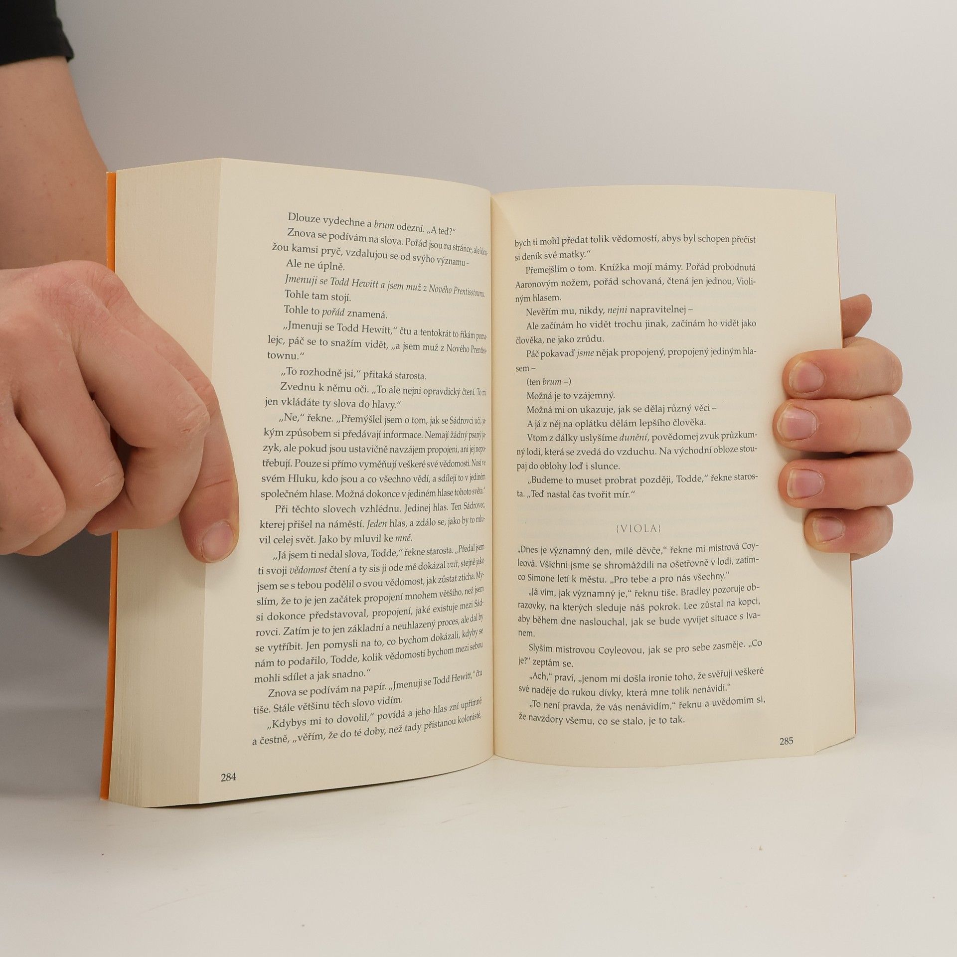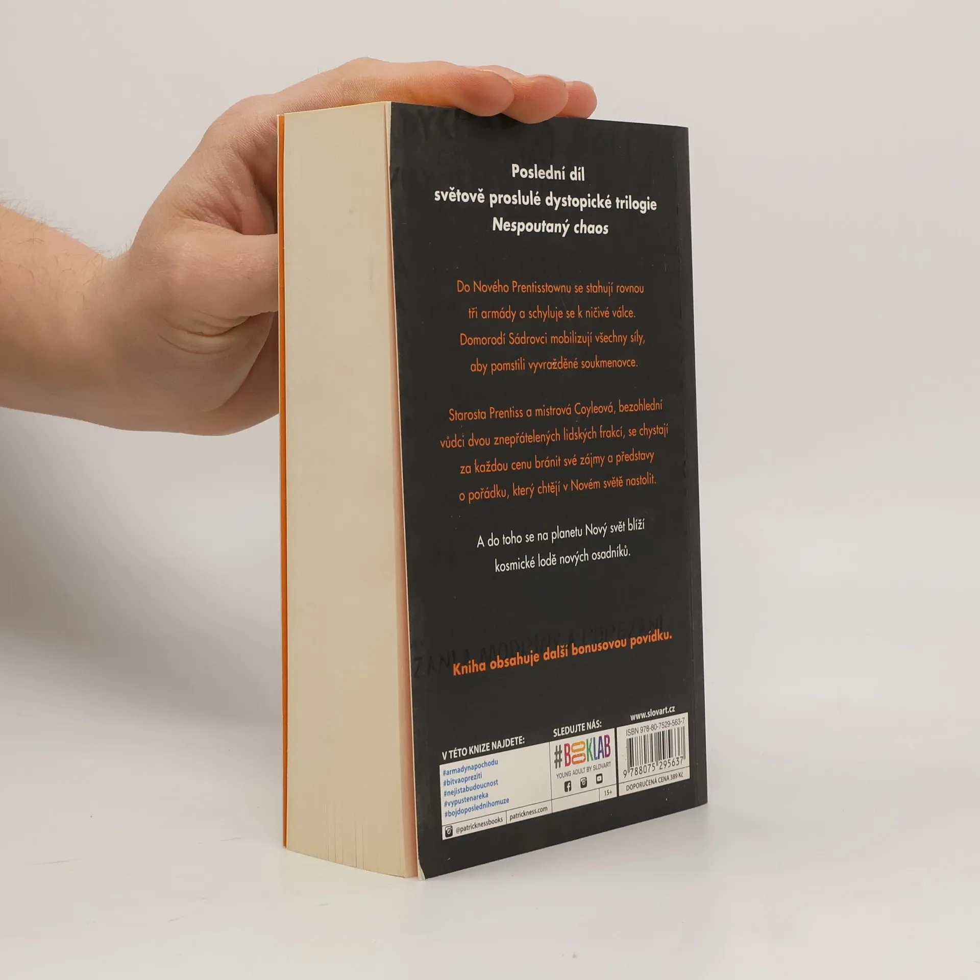 Ve strhujícím závěru napínavé trilogie se do Nového Prentisstownu stahují rovnou tři armády a schyluje se k ničivé válce. Domorodí Sádrovci zmobilizují všechny síly, aby pomstili vyvražděné soukmenovce. Starosta Prentiss a mistrová Coyleová, bezohlední vůdci dvou znepřátelených lidských frakcí, se chystají za každou cenu bránit své zájmy a představy o pořádku, který chtějí v Novém světě nastolit. A do toho se na planetu blíží kosmické lodě nových osadníků.
