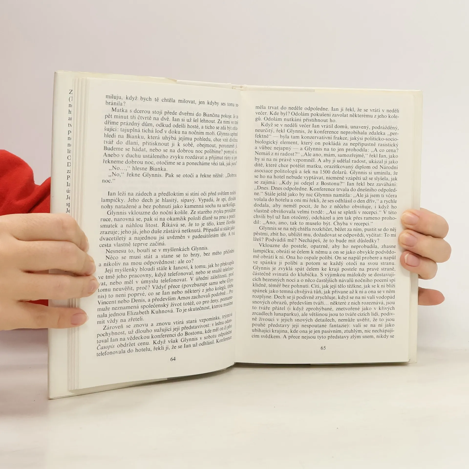 Kniha představuje dvojici manželů pozdních středních let, do jejichž spokojeného a bohatého života tragicky zasáhne nedorozumění a žárlivost. Děj se odehrává v 80. letech v malém městě, v intelektuální společnosti přátel a sousedů, kteří se navzájem povrchně dobře znají, ale o skutečných problémech hlavních hrdinů nic netuší. Těžiště díla je v brilantním vykreslení psychologie postav a ve skvělých dialozích.