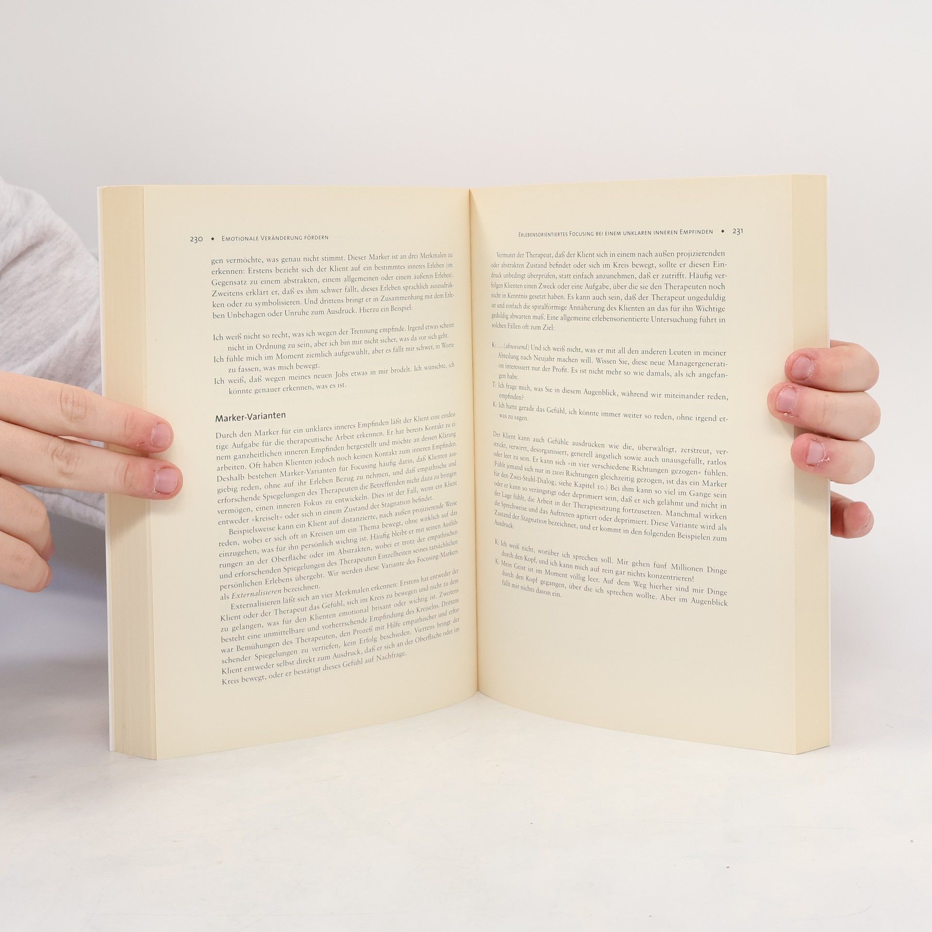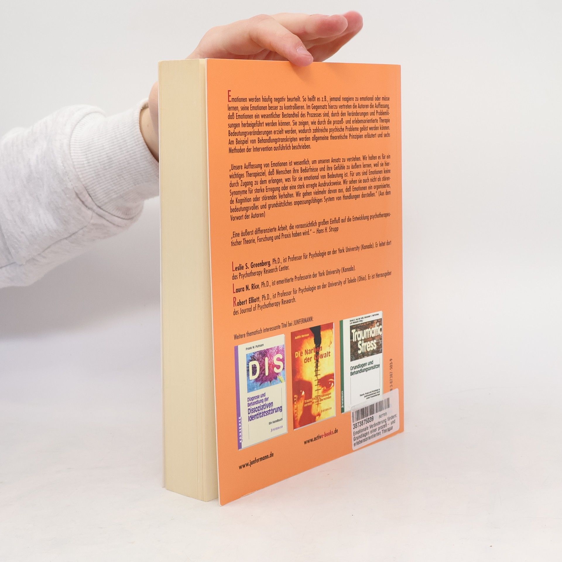 Emotionen werden häufig negativ beurteilt. So heißt es z. B., jemand reagiere zu emotional oder müsse lernen, seine Emotionen besser zu kontrollieren. Im Gegensatz hierzu vertreten die Autoren die Auffassung, daß Emotionen ein wesentlicher Bestandteil des Prozesses sind, durch den Veränderungen und Problemlösungen herbei geführt werden können. Sie zeigen, wie durch die prozeß- und erlebensorientierte Therapie Bedeutungsveränderungen erzielt werden, wodurch zahlreiche psychische Probleme gelöst werden können. Am Beispiel von Behandlungstranskripten werden allgemeine theoretische Prinzipien erläutert und sechs Methoden der Intervention ausführlich beschrieben. „Unsere Auffassung von Emotionen ist wesentlich, um unseren Ansatz zu verstehen. Wir halten es für ein wichtiges Therapieziel, daß Menschen ihre Bedürfnisse und ihre Gefühle zu äußern lernen, weil sie hierdurch Zugang zu dem erlangen, was für sie emotional von Bedeutung ist. Für uns sind Emotionen keine Synonyme für starke Erregung oder eine stark erregte Ausdrucksweise. Wir sehen sie auch nicht als störende Kognition oder störendes Verhalten. Wir gehen vielmehr davon aus, daß Emotionen ein organisiertes, bedeutungsvolles und grundsätzliches anpassungsfähiges System von Handlungen darstellen.“ (Aus dem Vorwort)