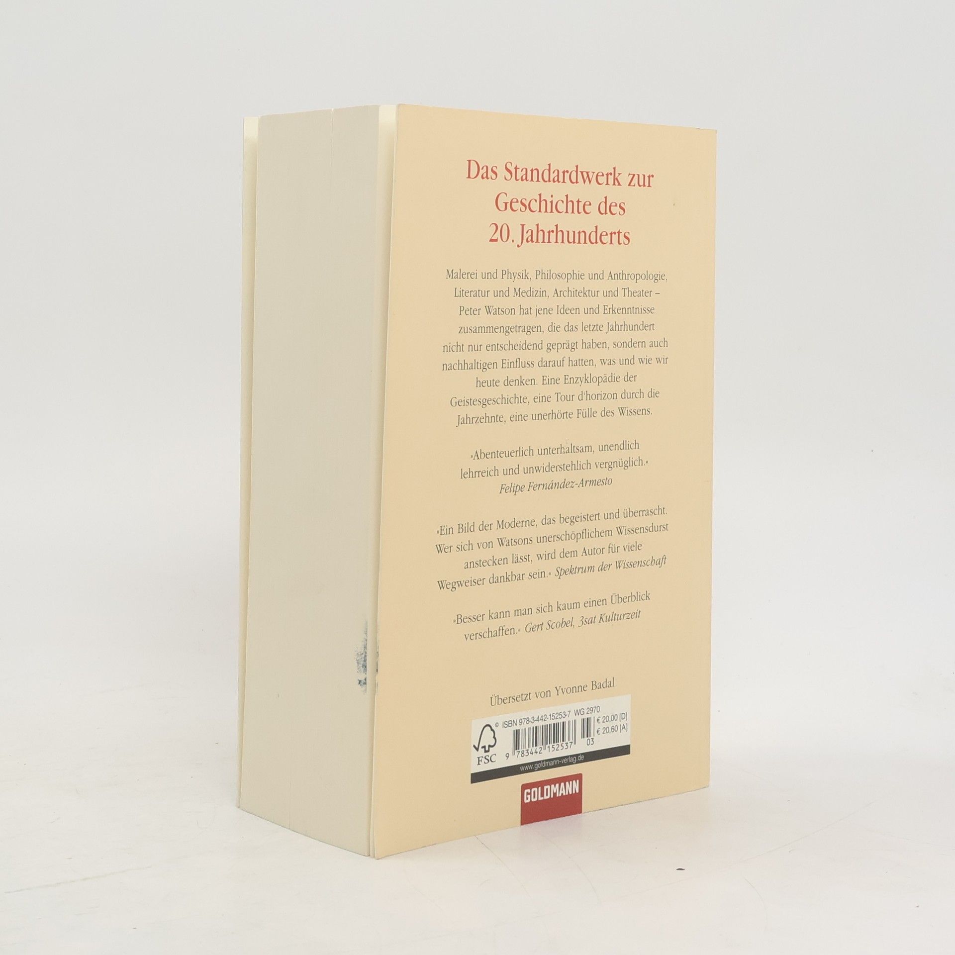 Das Standardwerk zur Geistesgeschichte des 20. Jahrhunderts Malerei und Physik, Philosophie und Anthropologie, Literatur und Medizin, Architektur und Theater – Peter Watson hat jene Ideen und Erkenntnisse zusammengetragen, die das letzte Jahrhundert nicht nur entscheidend geprägt haben, sondern auch nachhaltigen Einfluss darauf hatten, was und wie wir heute denken. Eine Enzyklopädie der Geistesgeschichte, eine Tour d’horizon durch die Jahrzehnte, eine unerhörte Fülle des Wissens, spannend und unterhaltsam präsentiert.
