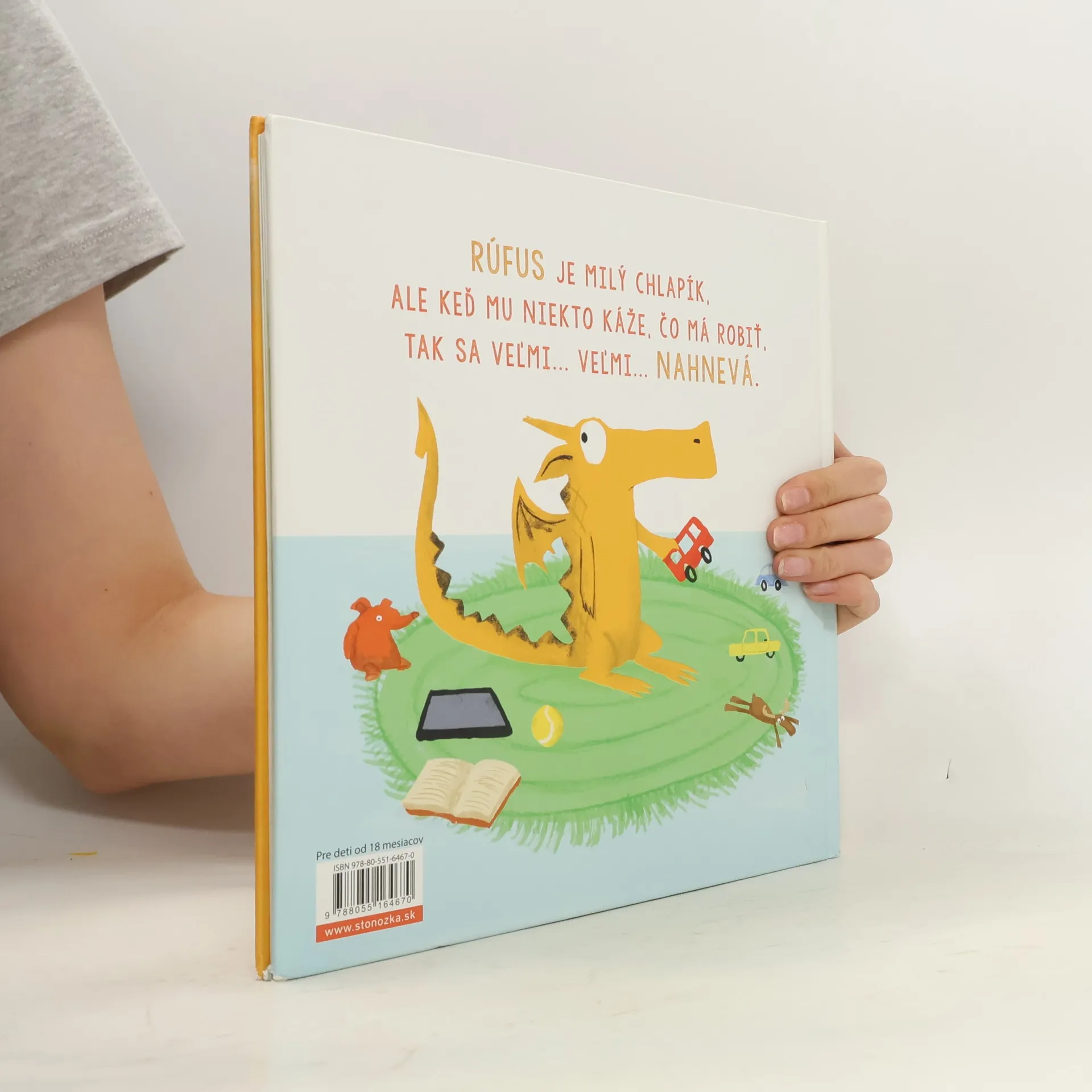 Rúfus je milý chlapík, ale keď mu niekto káže, čo má robiť, tak sa veľmi... veľmi... nahnevá. Vtipný, výchovne zameraný príbeh o dráčikovi, ktorý má problémy pre svoju ohnivú povahu. Keď však od iných zvieratiek odpozoruje, ako si vedia poradiť s hnevom, tiež sa naučí, ako ho premôcť a zostať pokojný. Zábavná knižka, ktorú by mali rodičia čítať deťom najmä vo chvíľach, keď tie svojím správaním pripomínajú dráčika Rúfusa.