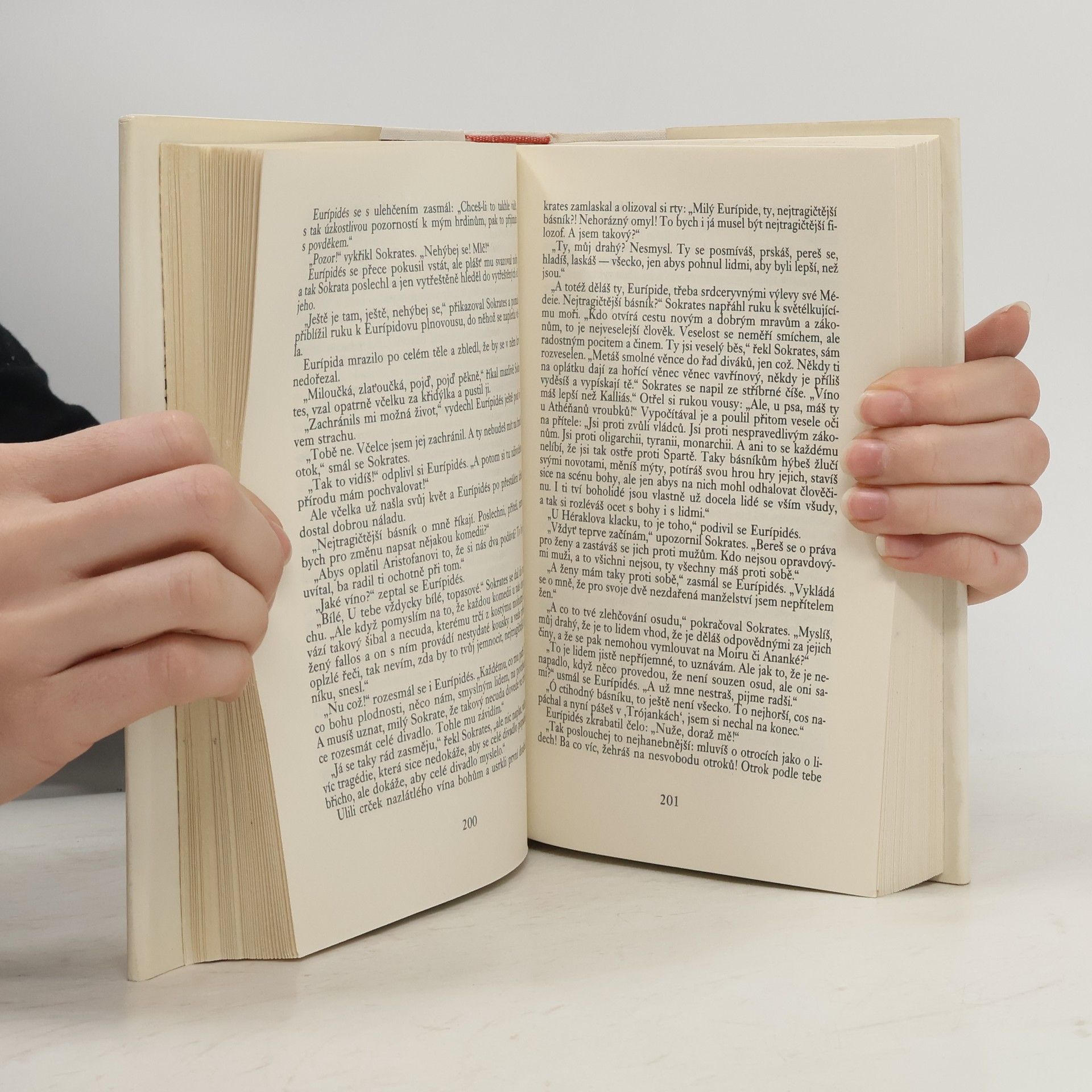 Na pozadí široce komponovaného obrazu Řecka v 5. století před n. l., postihujícího "zlatý věk" Řecka i dobu úpadku Athén, líčí autor životní osudy starořeckého filozofa od narození až po trest smrti otrávením. V románovém ději,seznamujícím i s řadou historických postav, jako jsou filozofové Anaxagorás, Platón, Sokratovi žáci, státník Periklés, sochař Feidiás, tragičtí básníci Sofoklés, Eurípidés aj., se promítá politické střetávání demokratů a oligarchů aobrážejí se i situace a problémy dnešního světa.