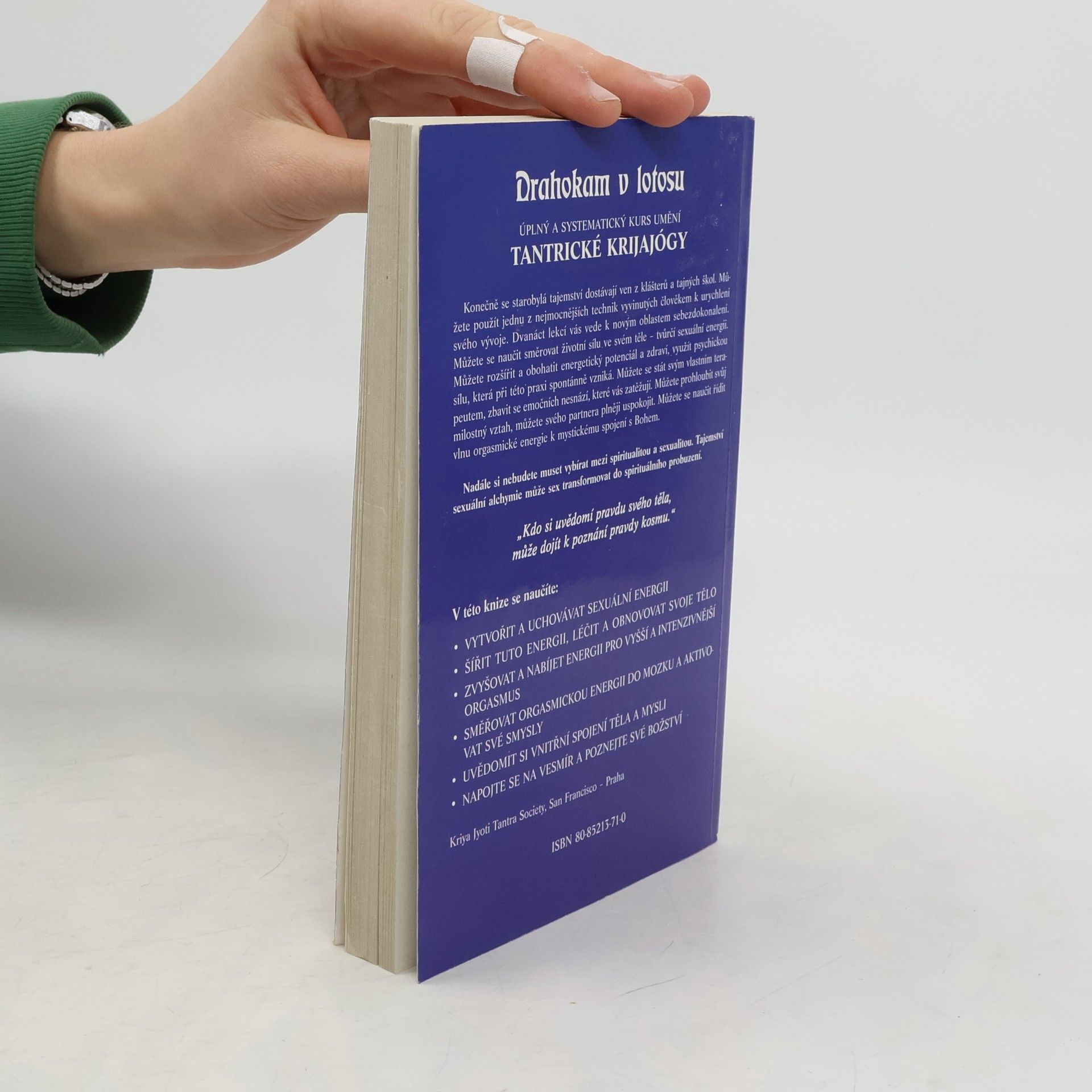 Úplný a systematický kurs umění tantrické krijajógy. Sexuální cesta k vyššímu vědomí. Naučíte se vytvářet a uchovávat sexuální energii, šířit tuto energii, léčit a obnovovat svoje tělo, zvyšovat a nabíjet energii pro vyšší a intenzivnější orgasmus, směřovat orgasmickou energii do mozku a aktivovat své smysly, uvědomit si vnitřní spojení těla a mysli, napojit se na vesmír a poznat své božství.