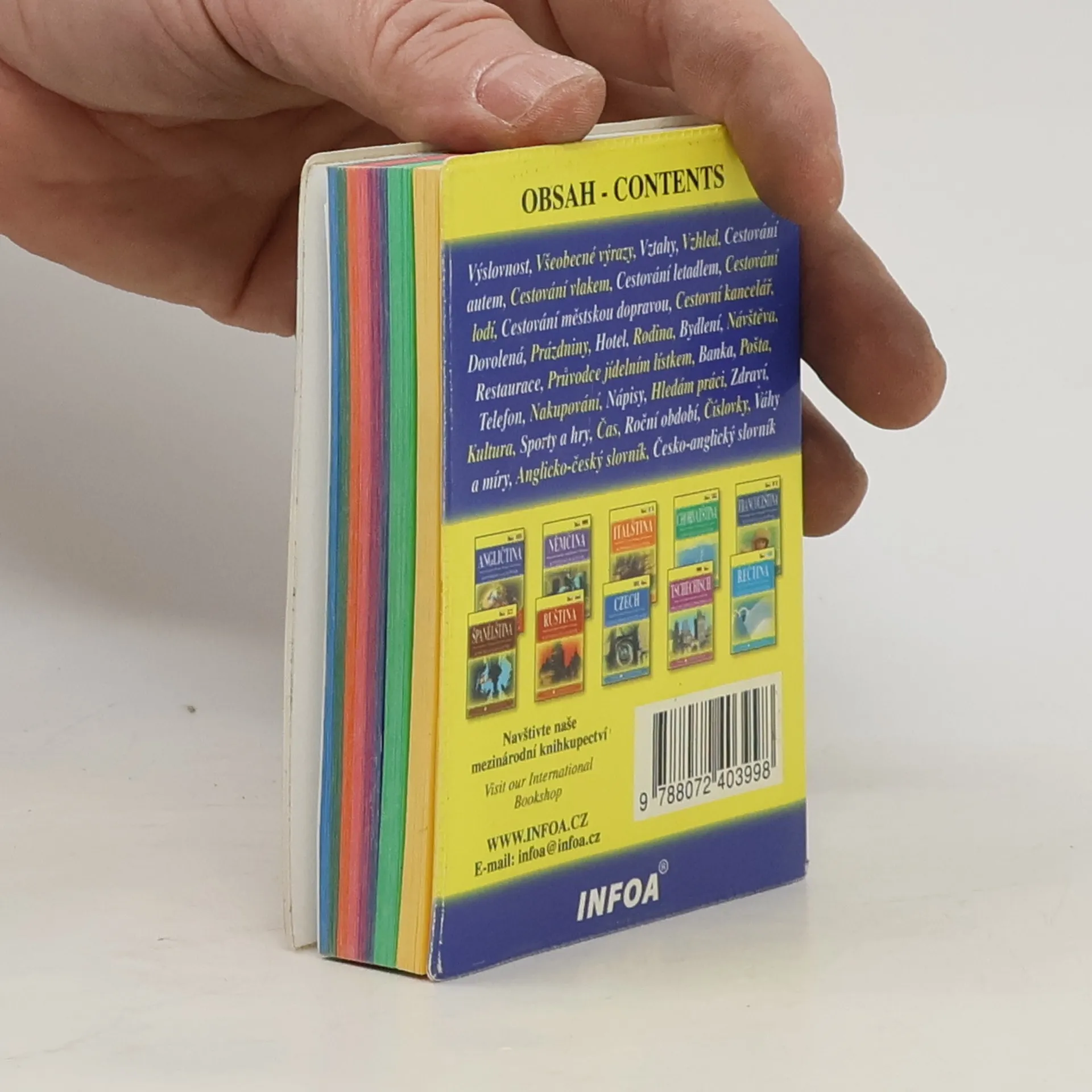 Konverzace a základní slovníček v jednom. Tato přehledná jazyková příručka se stane vaším neocenitelným průvodcem na cestách v zahraničí. Obsahuje základní konverzační témata potřebná v situacích, které nás při cestování mohou potkat – hotel, restaurace, nakupování, doprava, kultura a mnoho dalších. Jednotlivé kapitoly jsou barevně členěny podle tématu, kterému se věnují, a jsou tak mnohem přehlednější pro běžné využití v daném okamžiku. Druhou část jazykového průvodce na cesty tvoří oboustranný slovníček. Novinkou je možnost získat na stránkách nakladatele zvukovou verzi konverzace v anglickém jazyce, kterou publikace obsahuje.