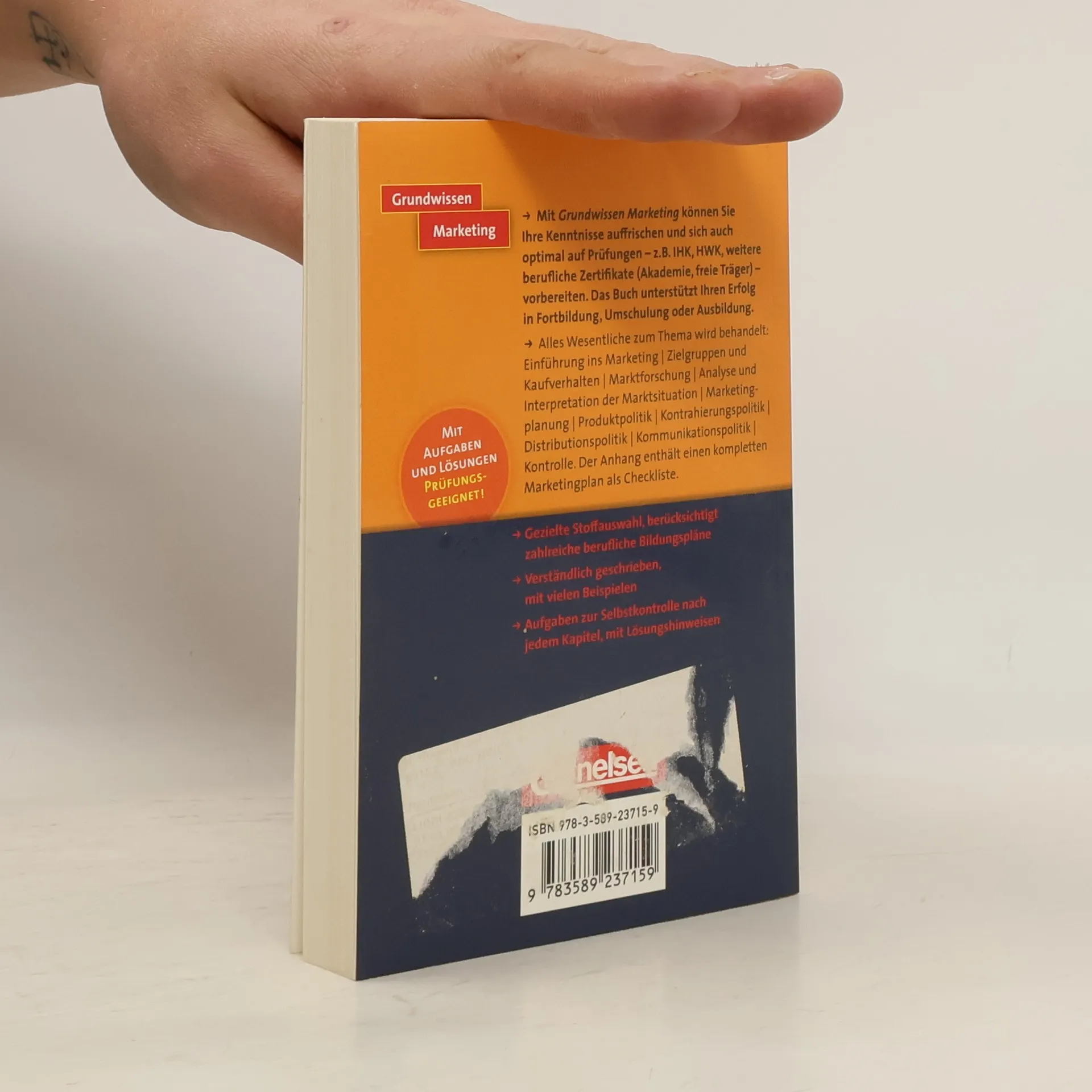 Das wirtschaftlich-kaufmännische Basiswissen in einer überschaubaren Anzahl von Bänden: Mit der 'Grundwissen-' Reihe können Fortbildungsteilnehmer/innen, Um- und Berufsschüler/innen ihre Kenntnisse auffrischen und sich optimal auf Prüfungen (IHK, HWK, Akademien, freie Träger) vorbereiten. Damit sind ausdrücklich auch kleinere oder neue Berufe angesprochen - sowie alle, für die der Buchmarkt keine berufsspezifischen Prüfungskompendien bereithält. Besondere Merkmale: - Gezielte Stoffauswahl, die zahlreiche berufliche Bildungspläne berücksichtigt - Verständliche Darstellungen mit vielen Beispielen und Visualisierungen - Aufgaben/Fragen zur Selbstkontrolle nach jedem Hauptkapitel - mit Lösungshinweisen Herausgeber der Reihe ist das „Forum Berufsbildung“, ein freier und gemeinnütziger beruflicher Bildungsträger. Alles Wesentliche zum Thema: Einführung ins Marketing; Zielgruppen und Kaufverhalten; Marktforschung; Analyse und Interpretation der Marktsituation; Marketingplanung; Produkt-, Kontrahierungs-, Distributions- und Kommunikationspolitik; Kontrolle. Der Anhang enthält einen kompletten Marketingplan als Checkliste.