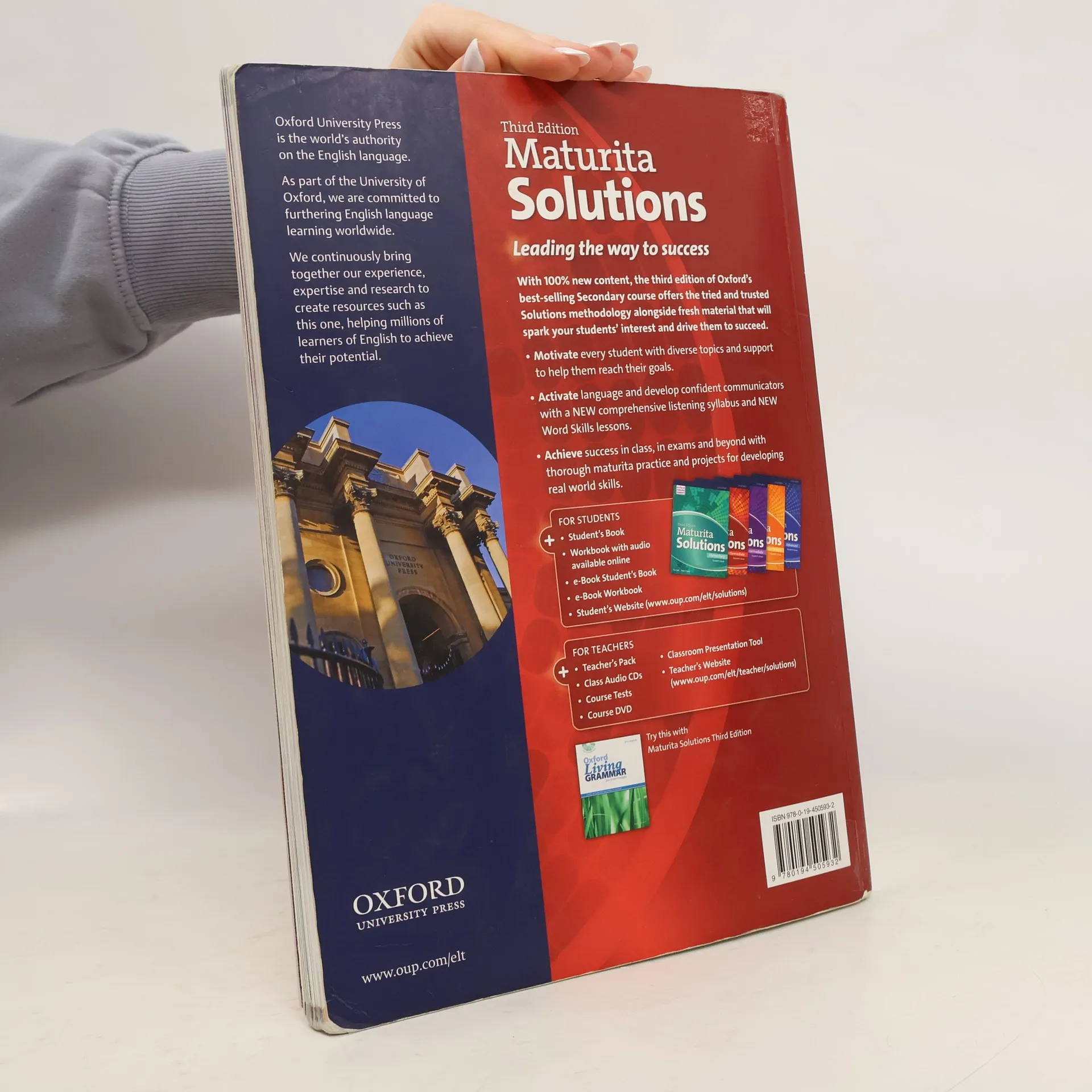 Učebnice. Zcela nový pětidílný kurz určený pro studenty českých středních škol, kteří se připravují na NOVOU MATURITU z anglického jazyka. - přehledná, jednoduchá stavba lekce: jedna stránka = jedna 45minutová hodina probírá a procvičuje maturitní témata - GET READY FOR MATURITA - připravuje na všechny části a na obě úrovně NOVÉ MATURITY - v metodické příručce je mnoho kopírovatelných doplňkových materiálů a nápadů pro mixed-ability classes