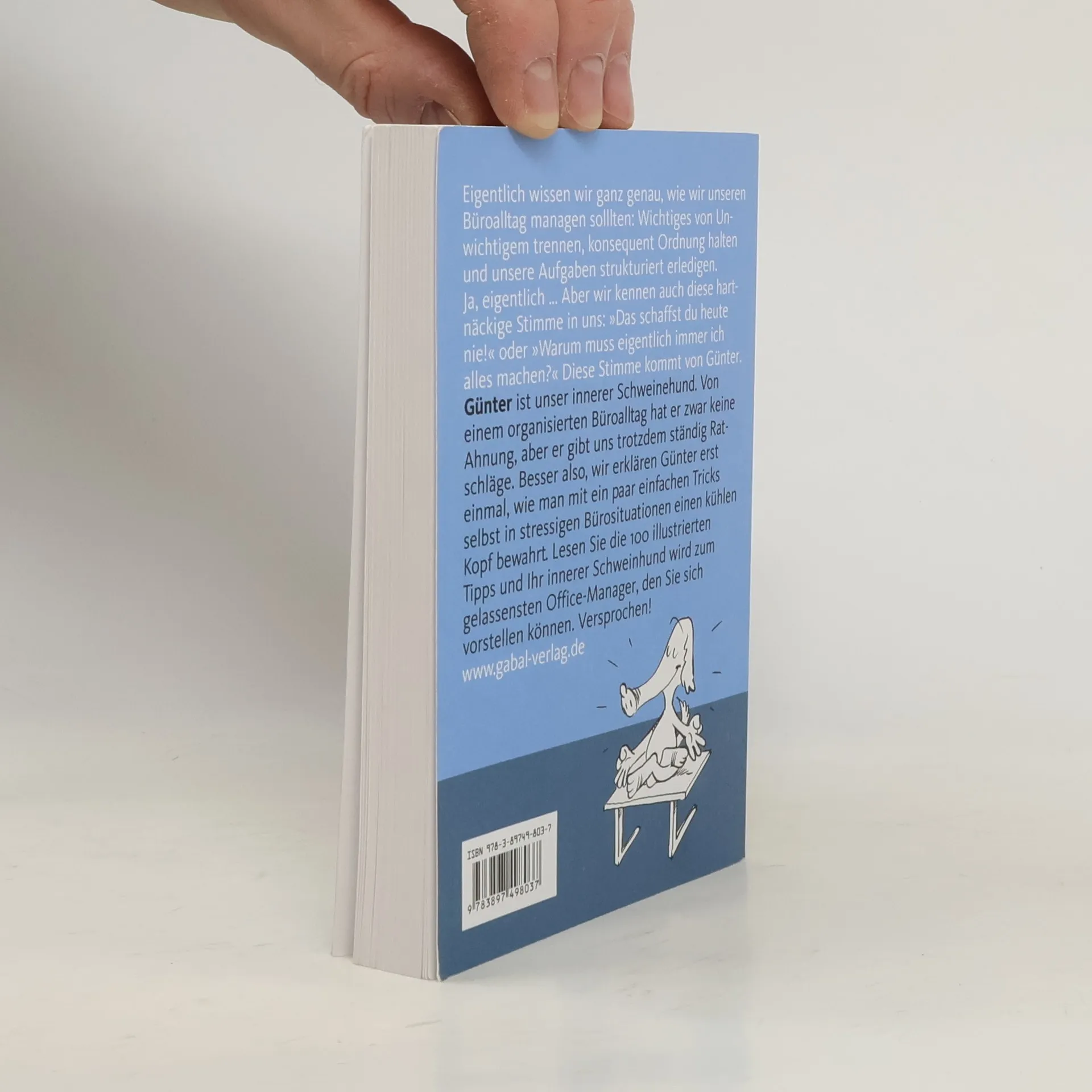 Der Chef ruft aus dem Nebenzimmer, das Telefon übt sich im Dauerklingeln, der Mailbox droht wegen Überfüllung der Kollaps – Business as usual, der ganz normale Bürowahnsinn? Schon erklingt sie wieder diese Stimme im Kopf, die uns sagt „Das schaffst du heute nie!“ oder „Warum muss eigentlich immer ich alles machen?“ Diese Stimme gehört Günter. Günter ist unser innerer Schweinehund und hat von einem organisierten Büroalltag keine Ahnung, aber dafür tausend Tipps, wie wir der Arbeit noch etwas schneller entfliehen können. Besser jedoch wir zeigen ihm, wie man mit ein paar einfachen Tricks selbst in stressigen Situationen einen kühlen Kopf behält. Mit diesen 100 illustrierten Tipps wird Ihr innerer Schweinhund zu einem gelassenen Office-Manager, und Sie behalten den Büroalltag im Griff!