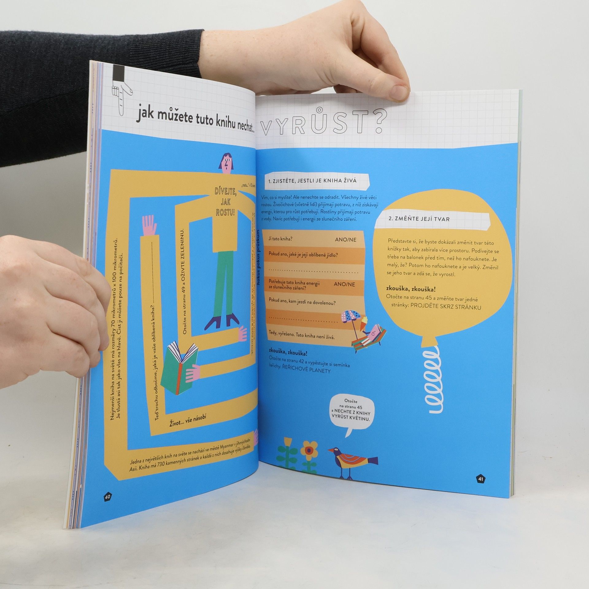 Jedná se o vědeckou knihu, kde právě kniha samotná hraje hlavní roli. Využijte sílu vědy a vyzkoušejte, za co kniha stojí! Experimenty na jejích stránkách povzbuzují děti v tom, aby zábavným, ale také vzdělávacím způsobem pomocí otázek, předpovědí a testování pokládaly vědecké dotazy. Kniha začíná tím, že děti vybízí, aby prověřily, roztrhly a rozřízly stránku, a tak otestovaly vlastnosti papíru. Následně jsou děti vybízeny k provádění rozličných experimentů a interaktivních úkolů na knize samotné, včetně jejího maskování nebo přetvoření na pohyblivé těleso přidáním koleček vyrobených z tužek. Kniha je výjimečným nástrojem k rozvoji dětské zvídavosti a představivosti.