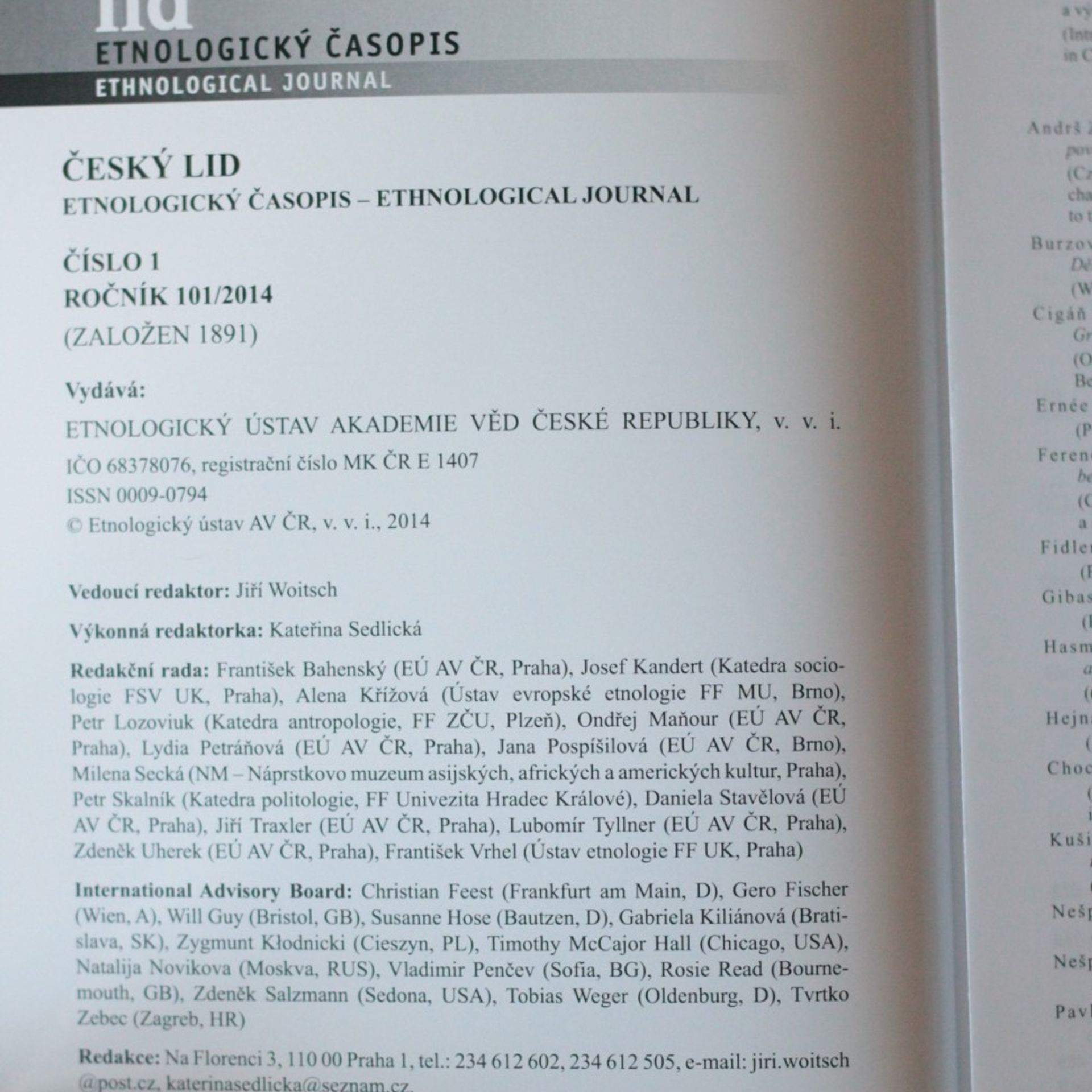 Etnologický časopis 1; r. 101, Autorenkollektiv