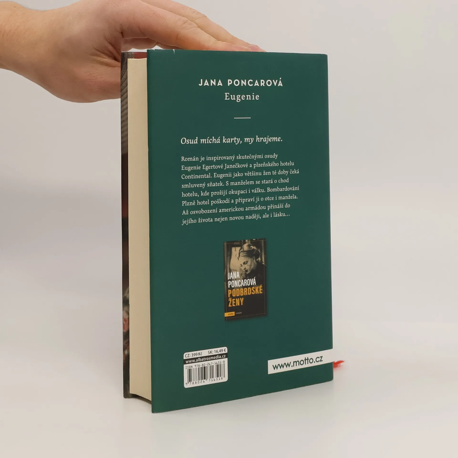 Podtitul: Příběh české hoteliérky. Román je inspirovaný skutečnými osudy Eugenie Egertové Janečkové a plzeňského hotelu Continental. Eugenii jako většinu žen té doby čeká smluvený sňatek. S manželem se stará o chod hotelu, kde prožijí okupaci i válku. Bombardování Plzně poškodí hotel a připraví ji o otce a manžela. Až osvobození americkou armádou přináší do jejího života nejenom novou naději, ale i lásku…