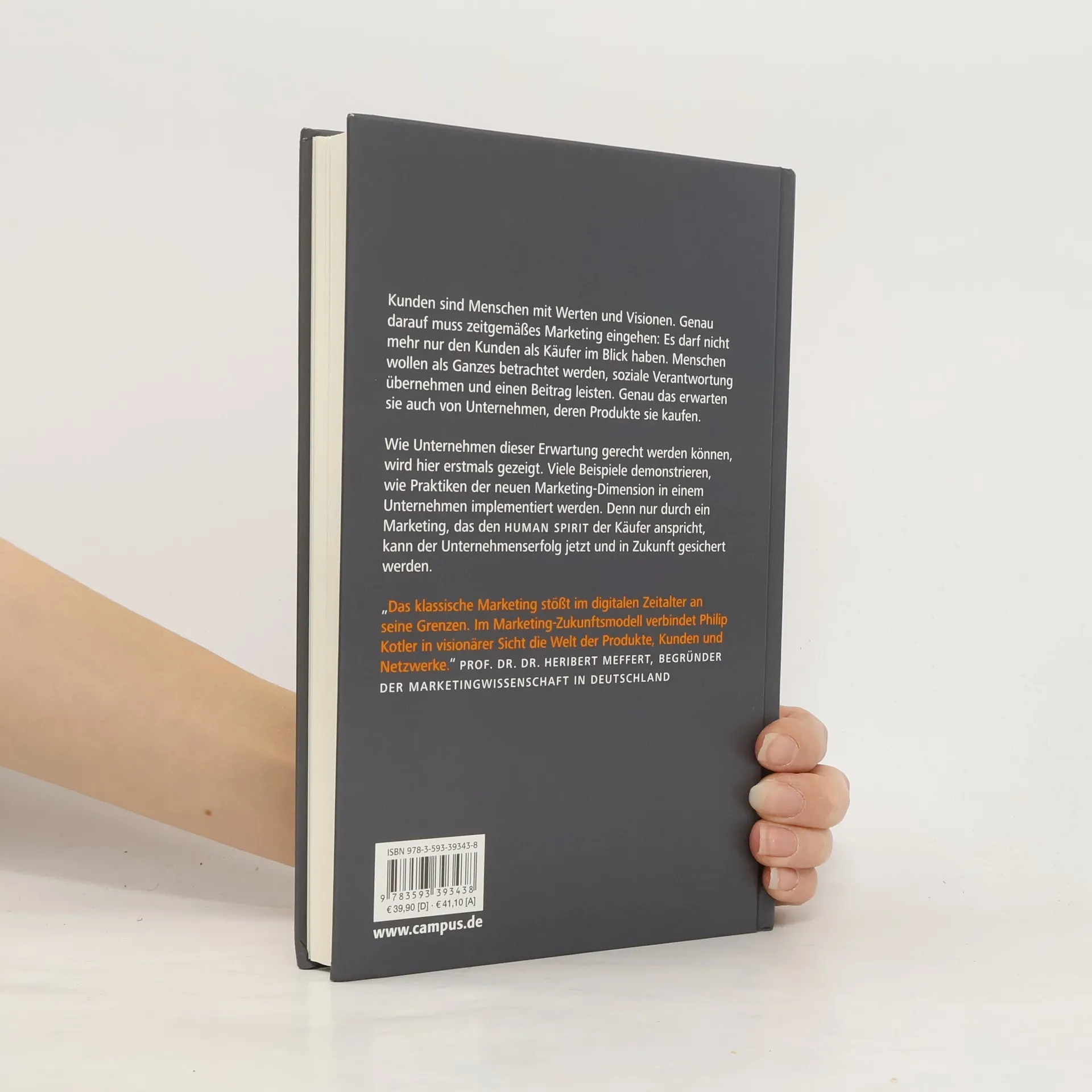 Kunden sind Menschen mit Werten und Visionen. Genau darauf muss zeitgemäßes Marketing eingehen: Es darf nicht mehr nur den Kunden als Käufer im Blick haben. Menschen wollen als Ganzes betrachtet werden, soziale Verantwortung übernehmen und einen Beitrag leisten. Genau das erwarten sie auch von Unternehmen, deren Produkte sie kaufen. Wie Unternehmen dieser Erwartung gerecht werden können, wird hier erstmals gezeigt. Viele Beispiele demonstrieren, wie Praktiken der neuen Marketing-Dimension in einem Unternehmen implementiert werden. Denn nur durch ein Marketing, das den Human Spirit der Käufer anspricht, kann der Unternehmenserfolg jetzt und in Zukunft gesichert werden.