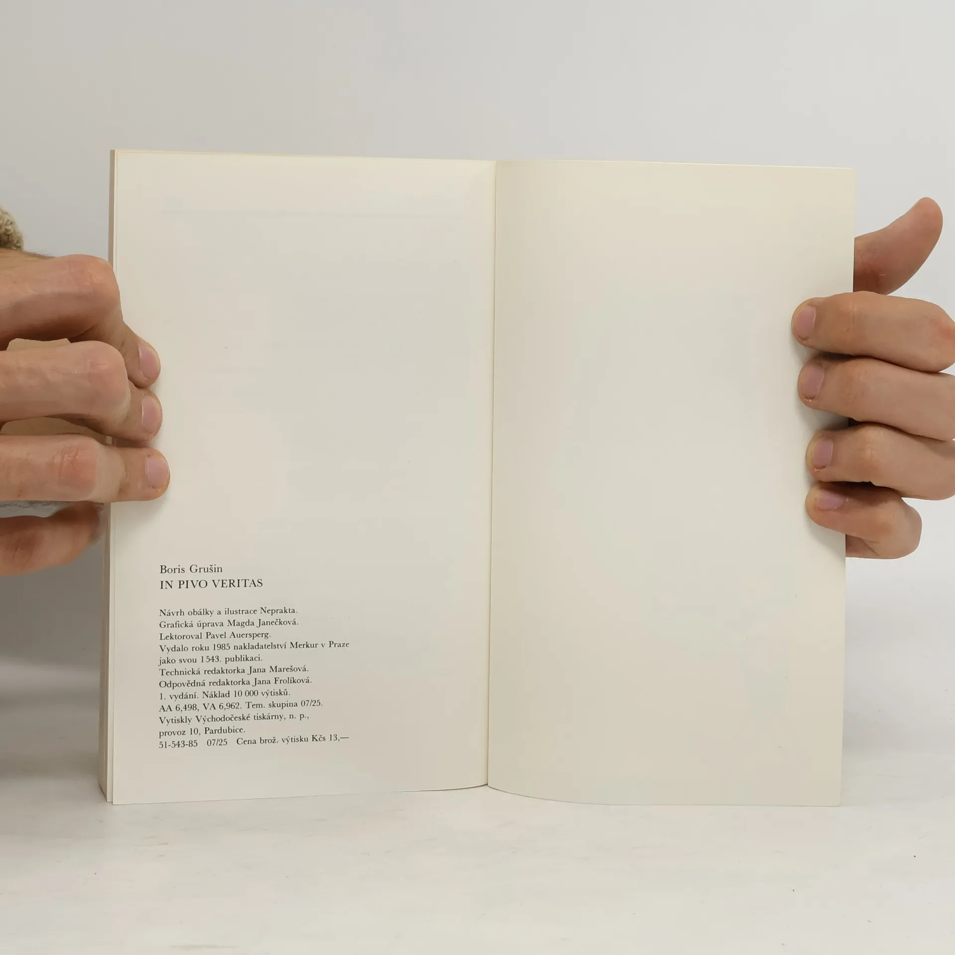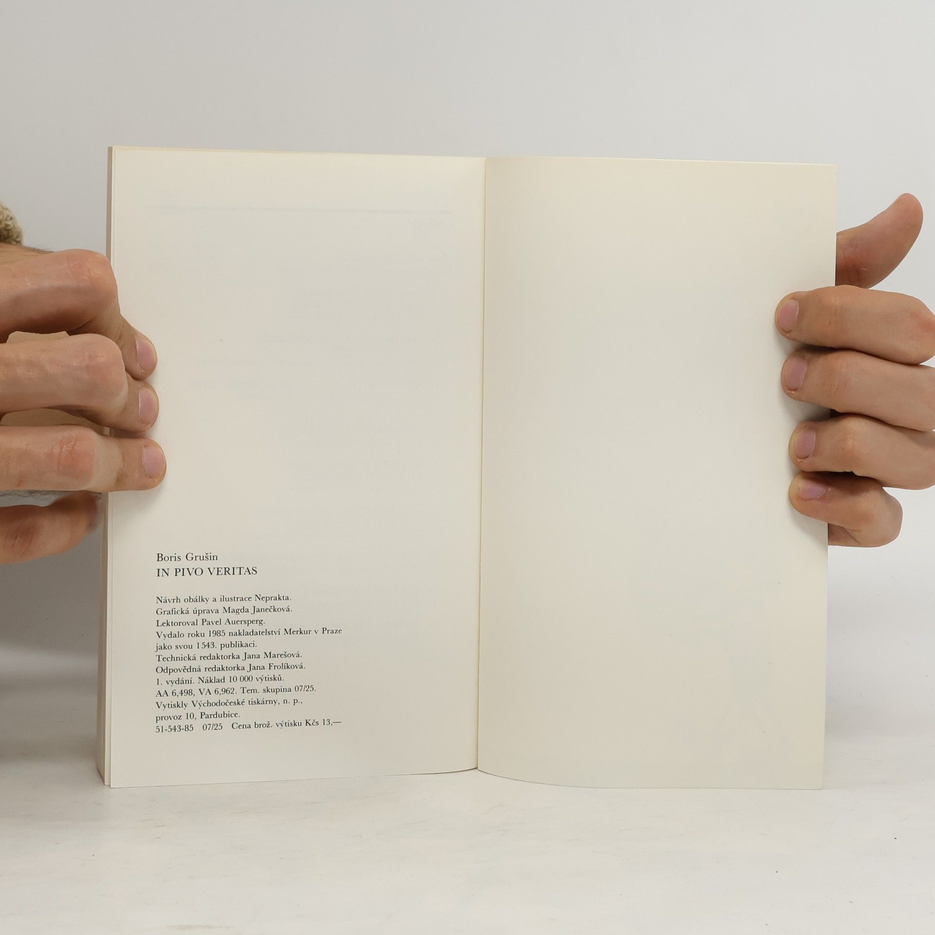 Autor knihy - profesor sociologie Boris Grušin při svém pobytu v Praze v 60. a 70.letech navštívil téměř 800 pražských hospod, a kromě pití piva si zapisoval vtípky, aforismy, básničky ze stěn a výčepů těchto podniků. Svoje zápisky vložil do knihy In pivo veritas.