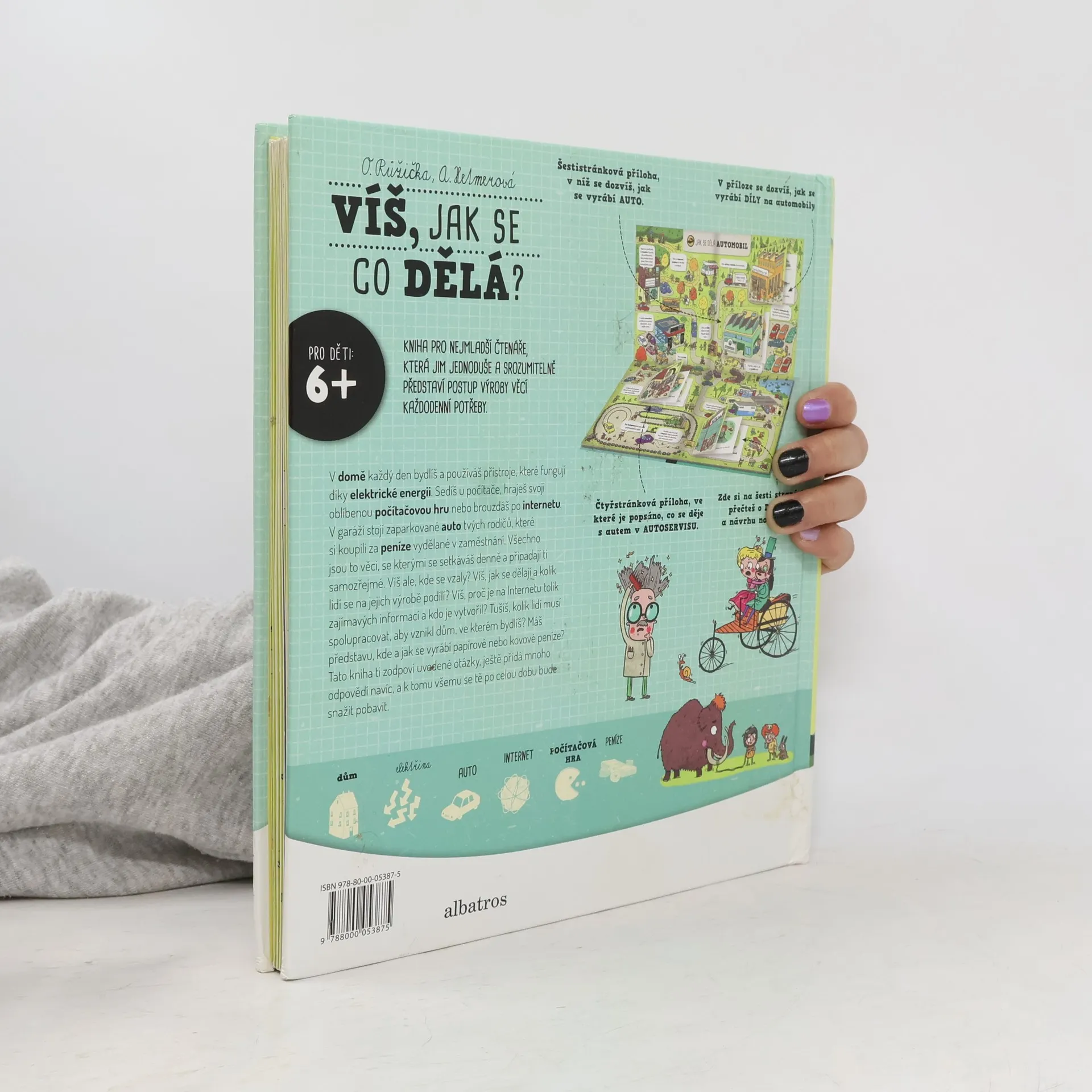 Víte, jak se vyrábí elektřina, automobil nebo jak funguje internet? Publikace s rozkládacími listy a otevíracími okénky. Pro mladší děti.Co vše je potřeba např. k postavení domu (od získávání surovin přes technologii výroby až po konečný produkt). To vše stručně a jednoduše vysvětleno na celostránkových ilustracích, doplněných krátkými texty.