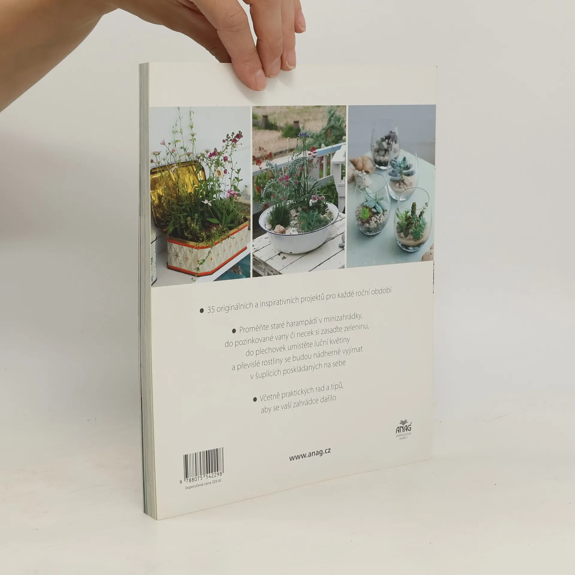 35 unikátních projektů, které plně využijí jakýkoliv malý prostor, ať už žijete na venkově nebo ve městě. Zahradničení v nejmenších měřítcích zahrnuje nápady pro vnitřní i venkovní prostory, jako jsou zahrady, balkony, okenní parapety či stolky. Projekty zahrnují elegantní kapradinová terária, voňavé jarní košíky, barevné tkané tašky a pytle s veselými letními květy. Čtenáři objeví jedlé zahrady, například ovocné keře zasazené do kuchyňských pánví a bylinky na dřevěných schůdkách ve vertikální zahradě. Nápady zahrnují použití zachráněných kontejnerů, jako je kovová vana plná zeleniny, nádoby na potraviny pro vnitřní květinovou zahradu a dřevěné zásuvky s převislými rostlinami. Na nejobtížnějším konci spektra jsou miniaturní zahrádky ve skořápkách od vajec. Děti se mohou naučit základní dovednosti zahradničení tím, že krok za krokem vytvoří kouzelné pohádkové zahrady nebo záhadné dinosauří bažiny. Ať už hledáte celoroční zeleň, letní květiny, nebo chcete pěstovat vlastní zeleninu a bylinky, tato kniha nabízí inspiraci a praktické znalosti, které potřebujete pro vylepšení vašeho okolí.
