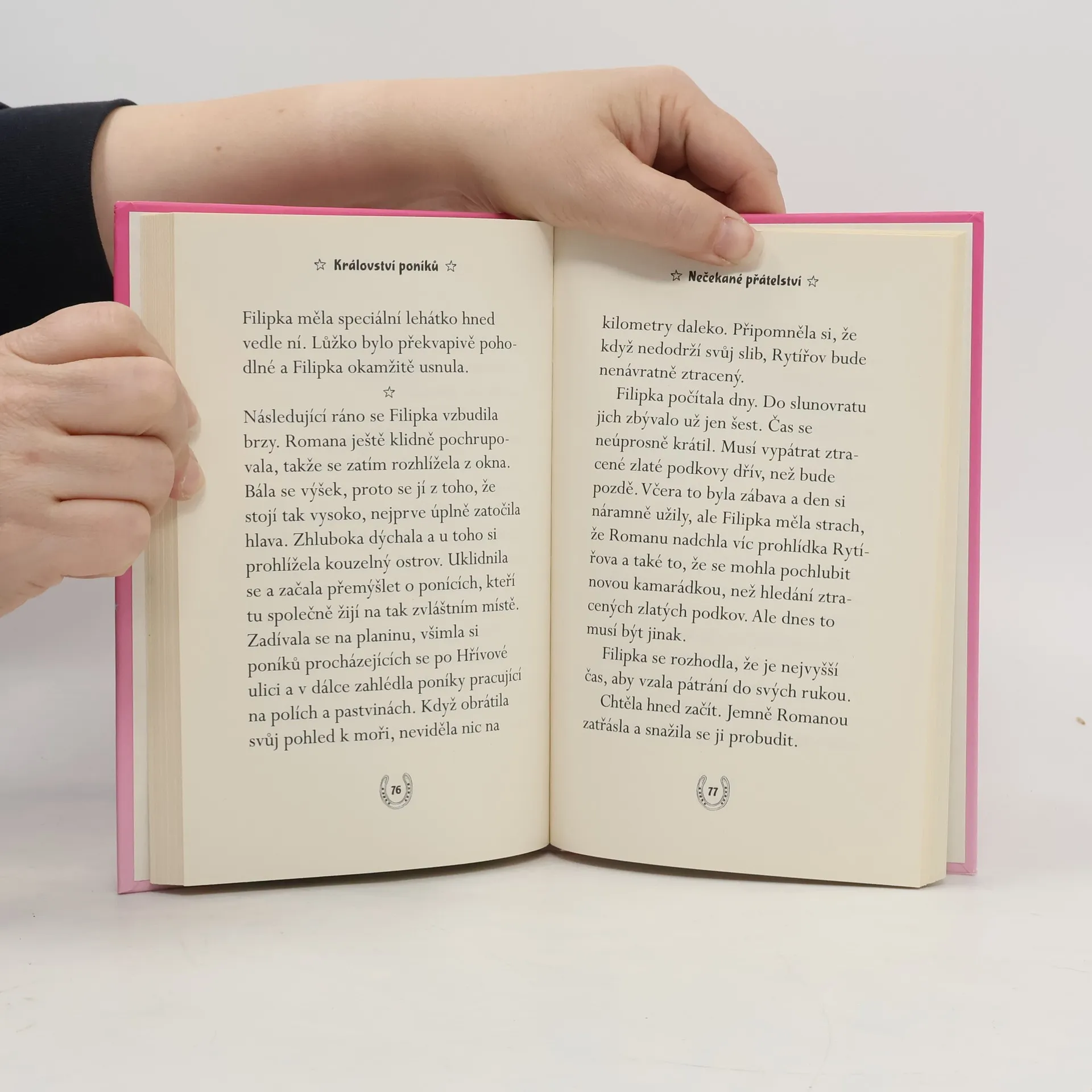 Uprostřed moře leží kouzelný ostrov, kde na hradě s mnoha věžemi vládne královská rodina poníků. Jednoho dne se ztratí osm kouzelných zlatých podkov a ostrov Rytířov se ocitne v ohrožení. Naštěstí ale poníkům přichází na pomoc holčička Filipka. Spolu s princeznou Romanou se vydávají na nebezpečnou výpravu s cílem ztracené podkovy najít. Dostanou se až k sopce ovládané zlými poníky? Podaří se jim společně zdolat všechny nástrahy a alespoň některou z podkov získat zpátky?