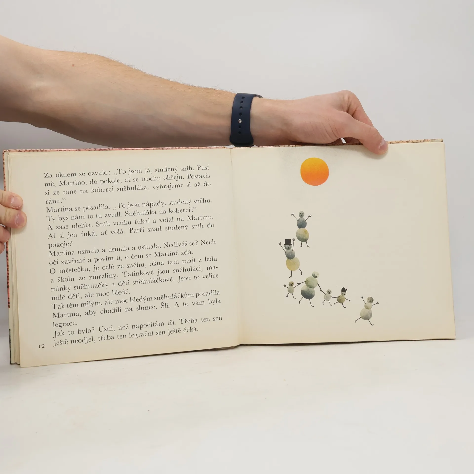 Pohádka, v níž malá holčička před usínáním rozmlouvá s deštěm a sněhem, jež ťukají na okno, přátelí se s vrabcem, který se na okno přišel schovat před nepohodou, naslouchá jeho příběhům, a potom se prochází za noci s hlídacím psem po zahradě a po domě a učí se od něho nebát se tmy.