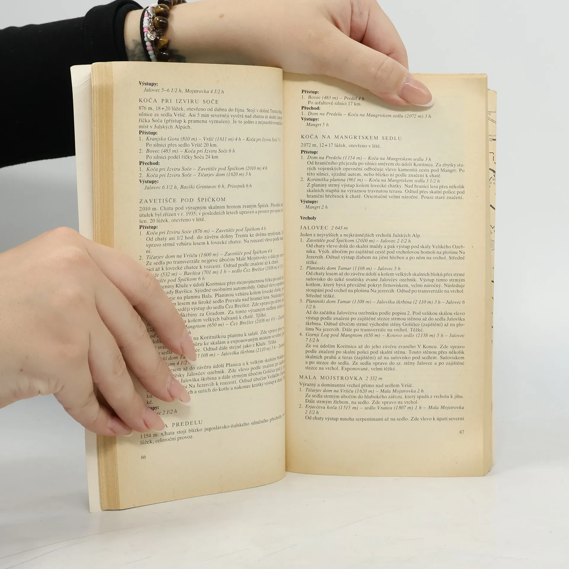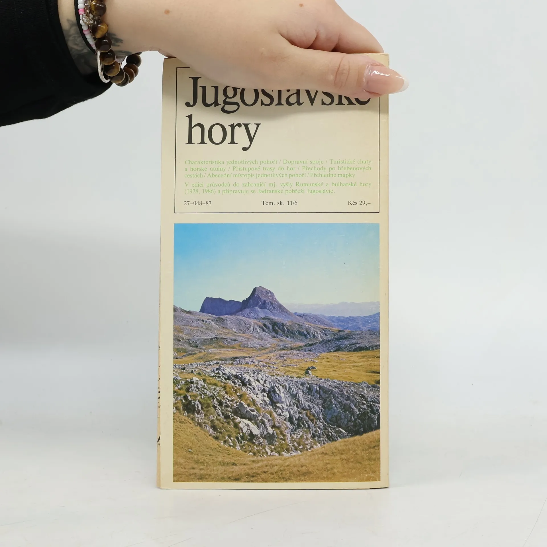 Průvodce (charakteristika jednotlivých pohoří, trasy, přechody, horské chaty, místopis), mapy (kresba Jiří Hedánek) a česko-slovinsko-srbocharvátsko-makedonský slovníček.