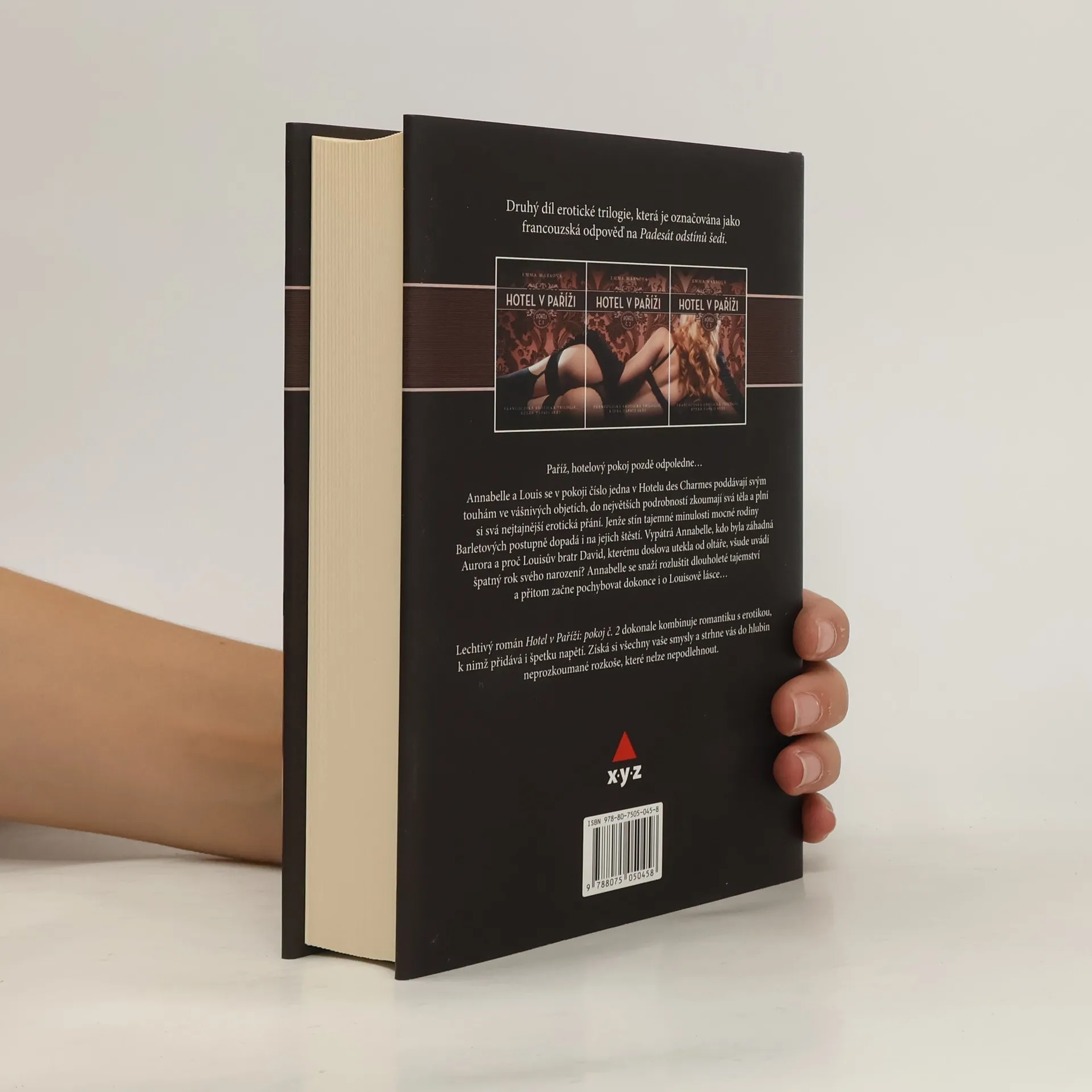 Paříž, hotelový pokoj pozdě odpoledne… Annabelle a Louis se v pokoji číslo jedna v Hotelu des Charmes poddávají svým touhám ve vášnivých objetích, do největších podrobností zkoumají svá těla a plní si svá nejtajnější erotická přání. Jenže stín tajemné minulosti mocné rodiny Barletových postupně dopadá i na i jejich štěstí... Druhý díl erotické trilogie, která je považována za francouzskou odpověď na Fifty Shades of Grey.
