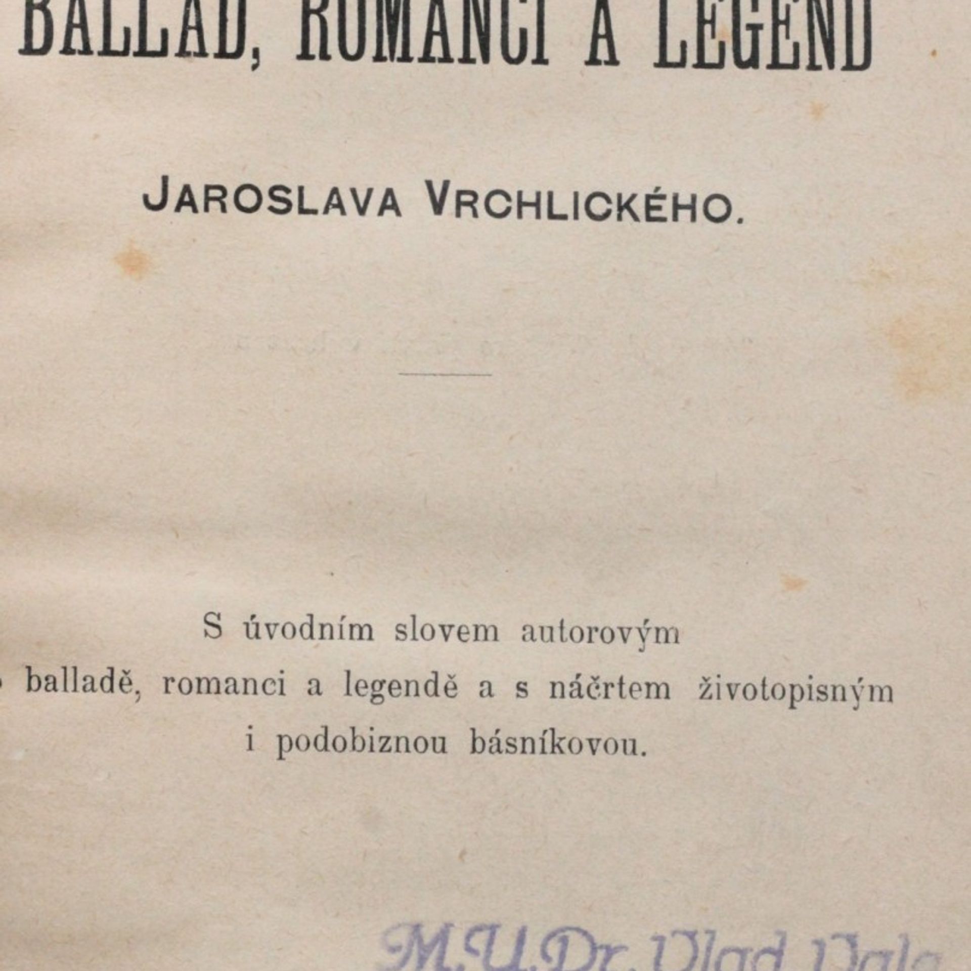 Kytka ballad, romancí a legend Jaroslava Vrchlického : s úvodním slovem autorovým o balladě, romanci a legendě a s náčrtkem životopisným i podobiznou básníkovou, Jaroslav Vrchlický