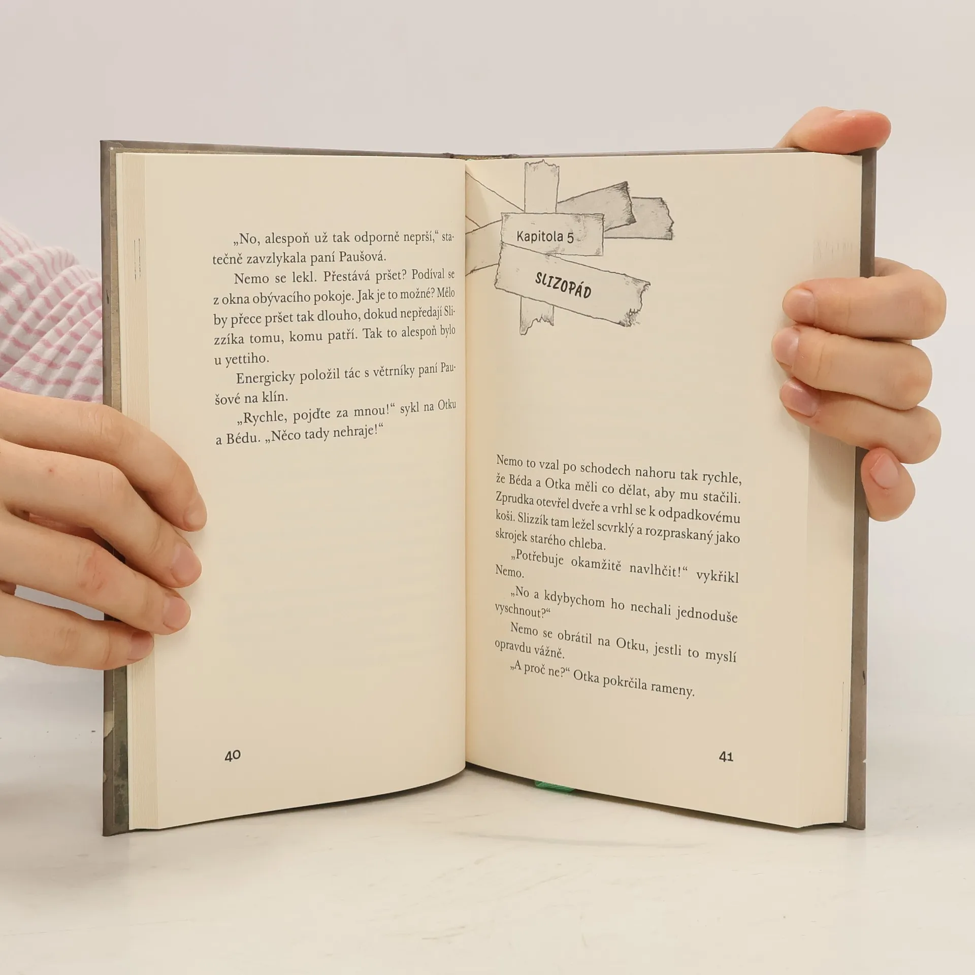 Už zase! Nemovi přišel poštou další balíček s nápisem Neotvírat! Pod něj někdo připsal ještě jedno varování − Slizké! Co to jen může být? Nemo a jeho přátelé Béda a Otka neodolají a balíček tajně otevřou. Najdou v něm zelený sliz, který nejenže mluví a je strašně lechtivý, ale zdá se, že má i další, skoro zázračné schopnosti. Nemo a Béda začnou okamžitě snít o tom, že z nich budou milionáři. Podaří se jim to? Stane se ale ještě něco. Rázem se změní počasí, slizký liják zaplaví celý Suchopár a někteří lidé začnou mít problém! Naši tři přátelé vědí, že pokud Slizzíka nevrátí, kam patří, nastane úplná katastrofa. Pustí se tedy do hledání. Jak celé dobrodružství plné napětí a neuvěřitelných příhod dopadne? Co udělají naší známí ze Suchopáru? Podaří se jim město i zelenou příšerku zachránit? Vtipné a milé vyprávění, ve kterém jde v prvé řadě o přátelství, potěší všechny, kteří rádi čtou. Třeba před spaním?