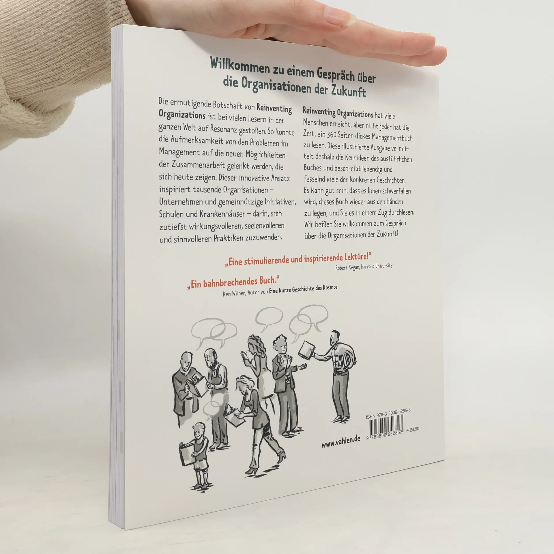 Willkommen zu einem Gespräch über die Organisationen der Zukunft. Die ermutigende Botschaft von Reinventing Organizations ist bei vielen Lesern in der ganzen Welt auf Resonanz gestoßen. So konnte die Aufmerksamkeit von den Problemen im Management auf die neuen Möglichkeiten der Zusammenarbeit gelenkt werden, die sich heute zeigen. Dieser innovative Ansatz inspiriert tausende Organisationen – Unternehmen und gemeinnützige Initiativen, Schulen und Krankenhäuser – darin, sich zutiefst wirkungsvolleren, seelenvolleren und sinnvolleren Praktiken zuzuwenden. Reinventing Organizations hat viele Menschen erreicht, aber nicht jeder hat die Zeit, ein 360 Seiten dickes Managementbuch zu lesen. Diese illustrierte Ausgabe vermittelt deshalb die Kernideen des ausführlichen Buches und beschreibt lebendig und fesselnd viele der konkreten Geschichten. Es kann gut sein, dass es Ihnen schwerfallen wird, dieses Buch wieder aus den Händen zu legen, und Sie es in einem Zug durchlesen. Wir heißen Sie willkommen zum Gespräch über die Organisationen der Zukunft! „Eine stimulierende und inspirierende Lektüre!“ Robert Kegan, Harvard University „Ein bahnbrechendes Buch.“ Ken Wilber, Autor von Eine kurze Geschichte des Kosmos