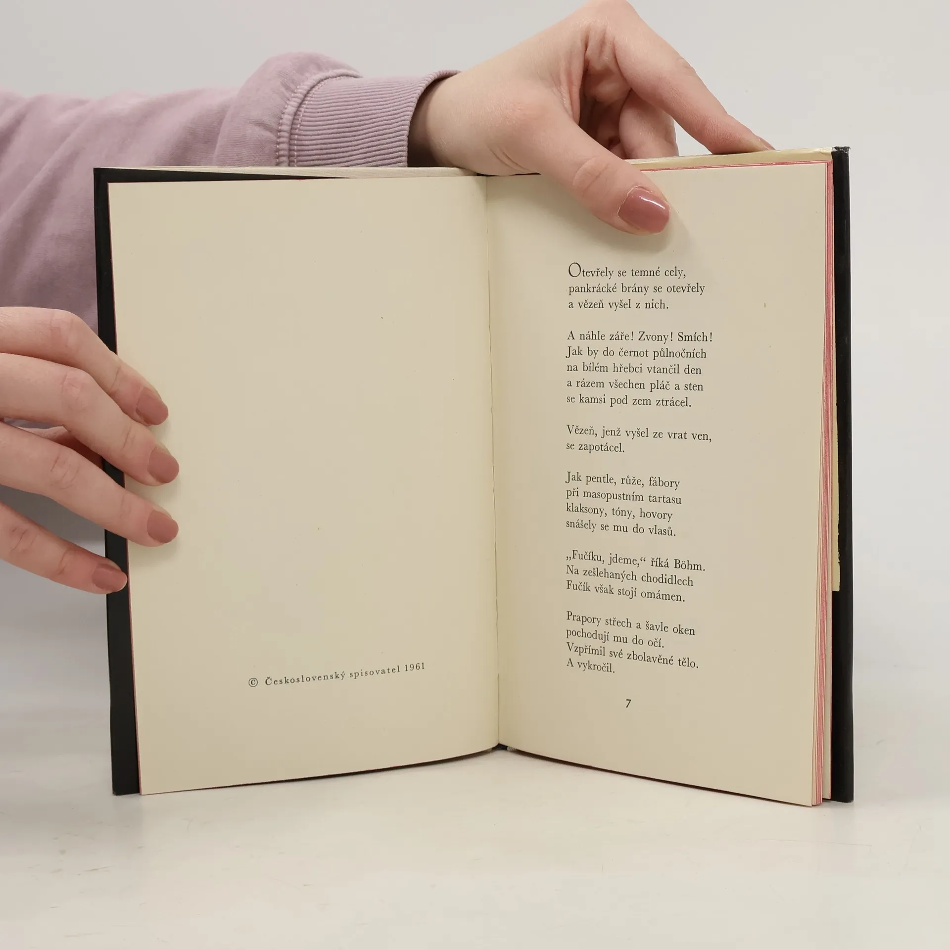 Rozlehlá poéma o Juliu Fučíkovi, jejž gestapák Böhm uprostřed jarem rozkvetlého Petřína a tváří v tvář kráse Prahy marně svádí k zradě idejí komunismu a národa.