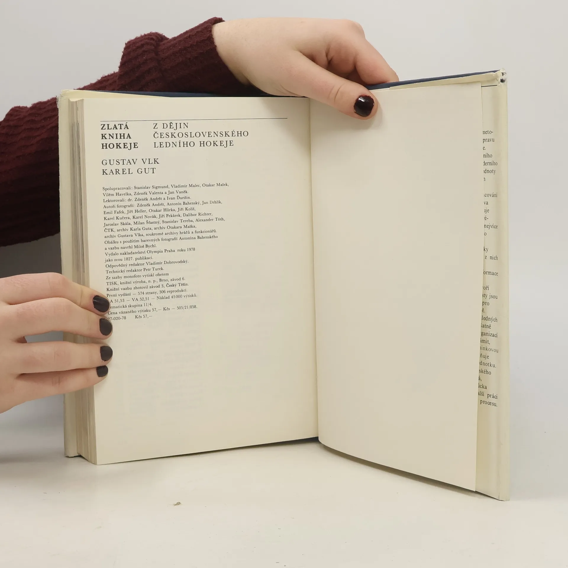 Zlatá kniha hokeje provází čtenáře historií ledního hokeje u nás od roku 1908 až do MS 1977. Autoři nevidí hokej izolovaně jen jako jedno ze sportovních odvětví, ale jako společenský jev souvisící s životem v našich zemích i v ostatním světě. První vydání. Cena knihy v čase vydání:57.- Kčs.