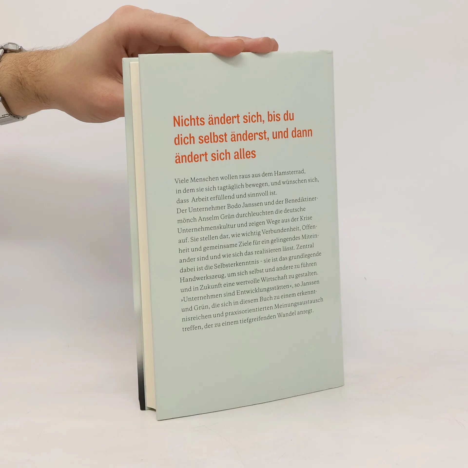 Nichts ändert sich, bis du dich selbst änderst, und dann ändert sich alles … Viele Menschen wollen raus aus dem Hamsterrad, in dem sie sich tagtäglich bewegen, und wünschen sich, dass Arbeit erfüllend und sinnvoll ist. Der Unternehmer Bodo Janssen und der Benediktinermönch Anselm Grün durchleuchten die deutsche Unternehmenskultur und zeigen Wege aus der Krise auf. Sie stellen dar, wie wichtig Verbundenheit, Offenheit und gemeinsame Ziele für ein gelingendes Miteinander sind und wie sich das realisieren lässt. Zentral dabei ist die Selbsterkenntnis – sie ist das grundlegende Handwerkszeug, um sich selbst und andere zu führen und in Zukunft eine wertvolle Wirtschaft zu gestalten. „Unternehmen sind Entwicklungsstätten“, so Janssen und Grün, die sich in diesem Buch zu einem erkenntnisreichen und praxisorientierten Meinungsaustausch treffen, der zu einem tiefgreifenden Wandel anregt.
