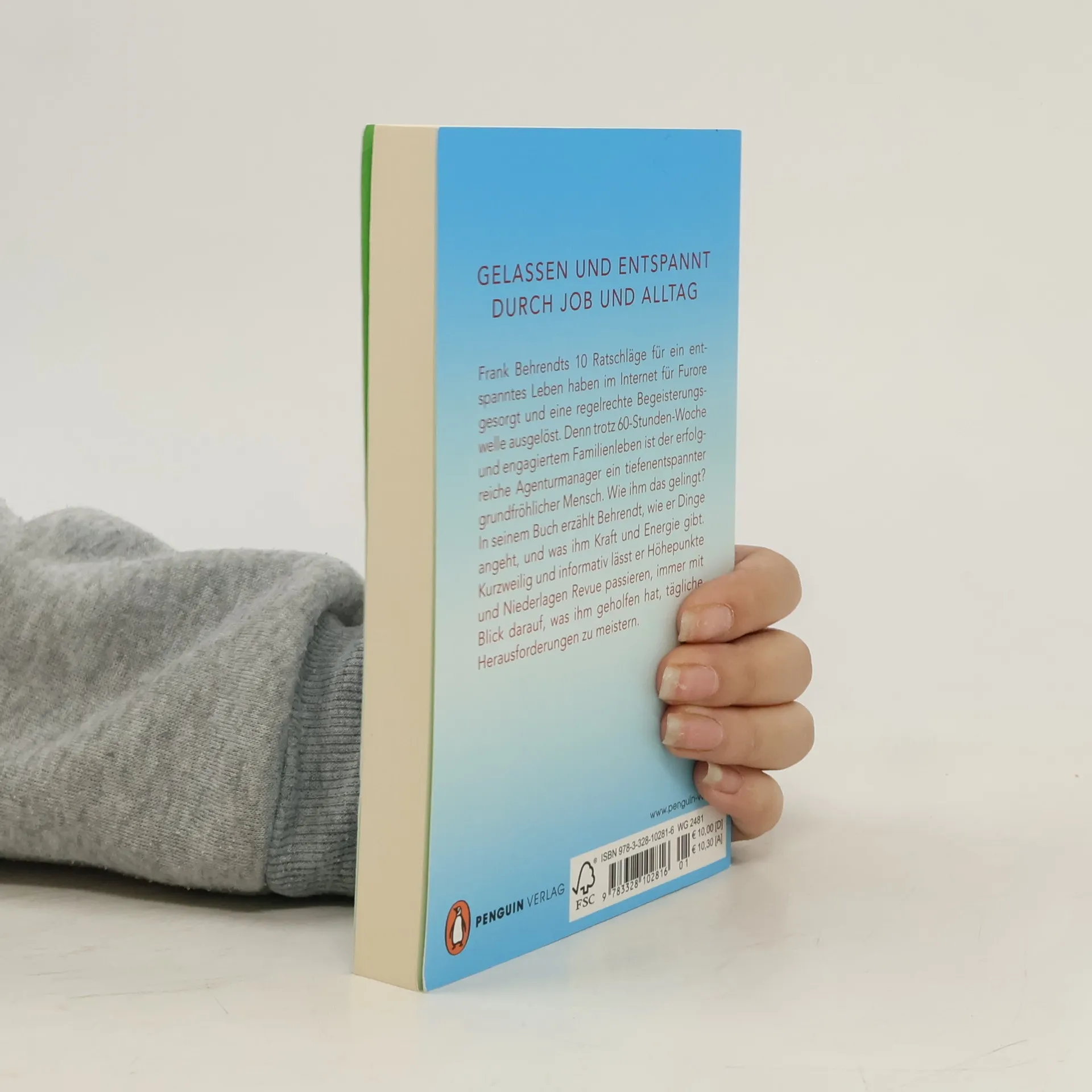Frank Behrendt gilt als »Guru der Gelassenheit«, seit er mit Ideen zur Bewältigung eines anstrengenden Berufslebens für Furore gesorgt hat. Denn trotz 60-Stunden-Woche und engagiertem Familienleben ist der erfolgreiche Agenturmanager tatsächlich ein tiefenentspannter, fröhlicher Mensch. Wie ihm das gelingt? In seinem Buch erzählt Behrendt, wie er Dinge angeht und was ihm Kraft und Energie gibt. Kurzweilig und informativ lässt er Höhepunkte und Niederlagen Revue passieren, immer mit Blick darauf, was ihm geholfen hat, tägliche Herausforderungen zu meistern. Eine Inspiration für alle, die Berufs- und Privatleben unter einen Hut bekommen müssen!