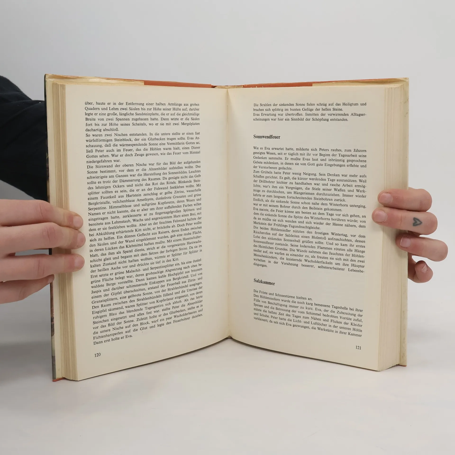 Ungekürzte Gesammtausgabe Die Trilogie besteht aus den Bänden Die Höhlenkinder im Heimlichen Grund (1918) Die Höhlenkinder im Pfahlbau (1919) Die Höhlenkinder im Steinhaus (1920) Die dreiteilige Erzählung beginnt 1683, nach dem Dreißigjährigen Krieg. Das dreijährige Waisenkind Eva lebt bei ihrer Großmutter, der „Ahnl“, im Stodertal nördlich des Toten Gebirges. Nach einem Unwetter wird diese der Hexerei verdächtigt und flieht mit dem Mädchen auf den Schultern zu ihrem Bruder Hans, der sein Leben als Köhler im Wald, in einem Seitengraben des Eisacktals fristet. Erneut wird sie als Hexe angeklagt. Der Großonkel (im Buch „Ähnl“ genannt) kennt einen versteckten Platz, zu dem man nur durch eine gefährliche Klamm Zutritt hat und der deswegen von den Menschen gemieden wird, den „Heimlichen Grund“. Dorthin flieht sie allein für einige Monate. Als sie zum Bruder zurückkehrt, bringt sie den unterwegs aufgelesenen Waisenknaben Peter mit, der etwa zwei bis drei Jahre älter ist als Eva und sich mit dieser anfreundet. Die beiden müssen den Pflegeeltern bei der täglichen Arbeit helfen, in Haus und Stall, beim Hüten der Ziegen, beim Sammeln von Beeren, Pilzen und essbaren Wurzeln. Als sie zehn bzw. dreizehn Jahre alt sind, wird die „Ahnl“ ein drittes Mal als Hexe verdächtigt, und nun fliehen alle vier vor den Häschern der Meraner Gerichtsbarkeit in den „Heimlichen Grund“.