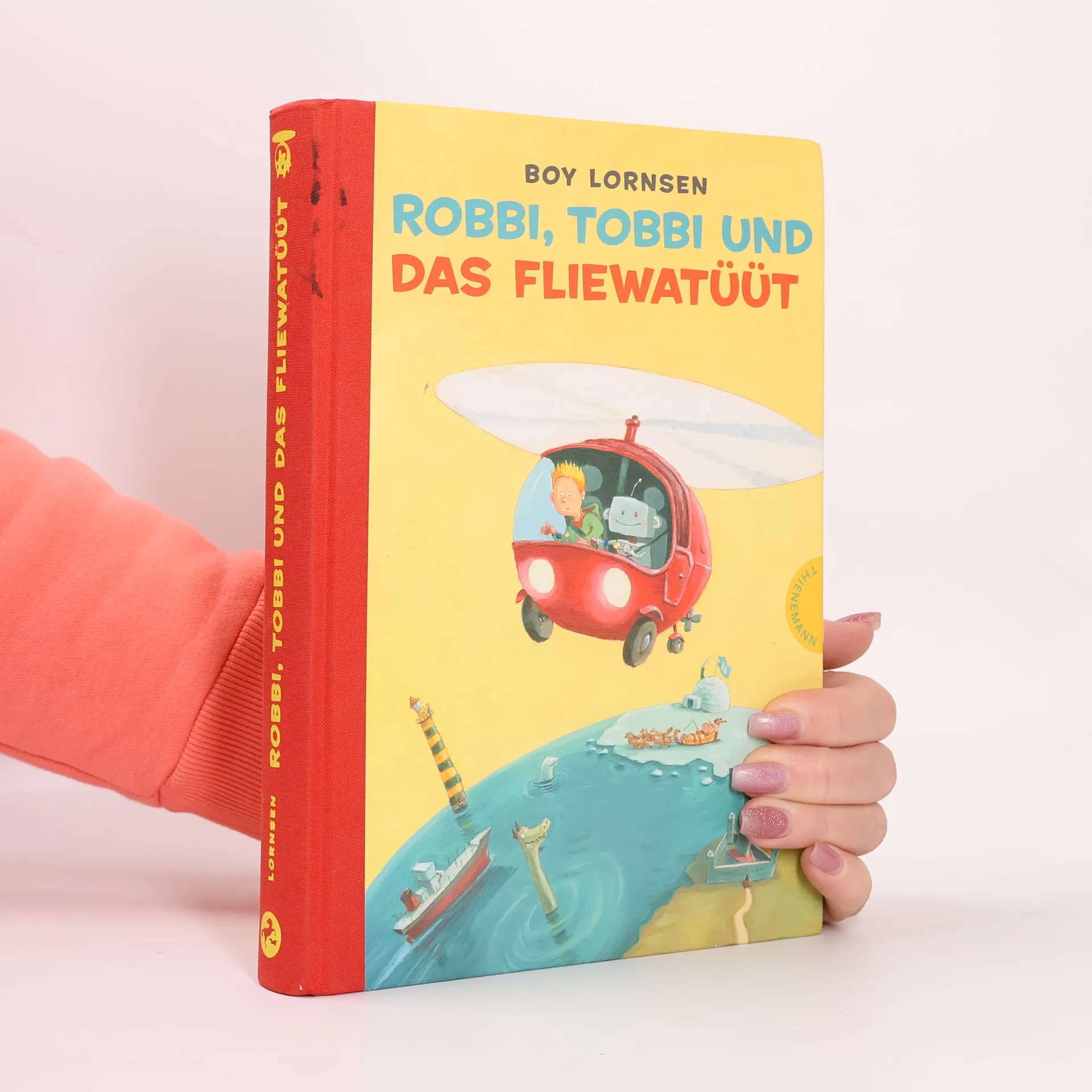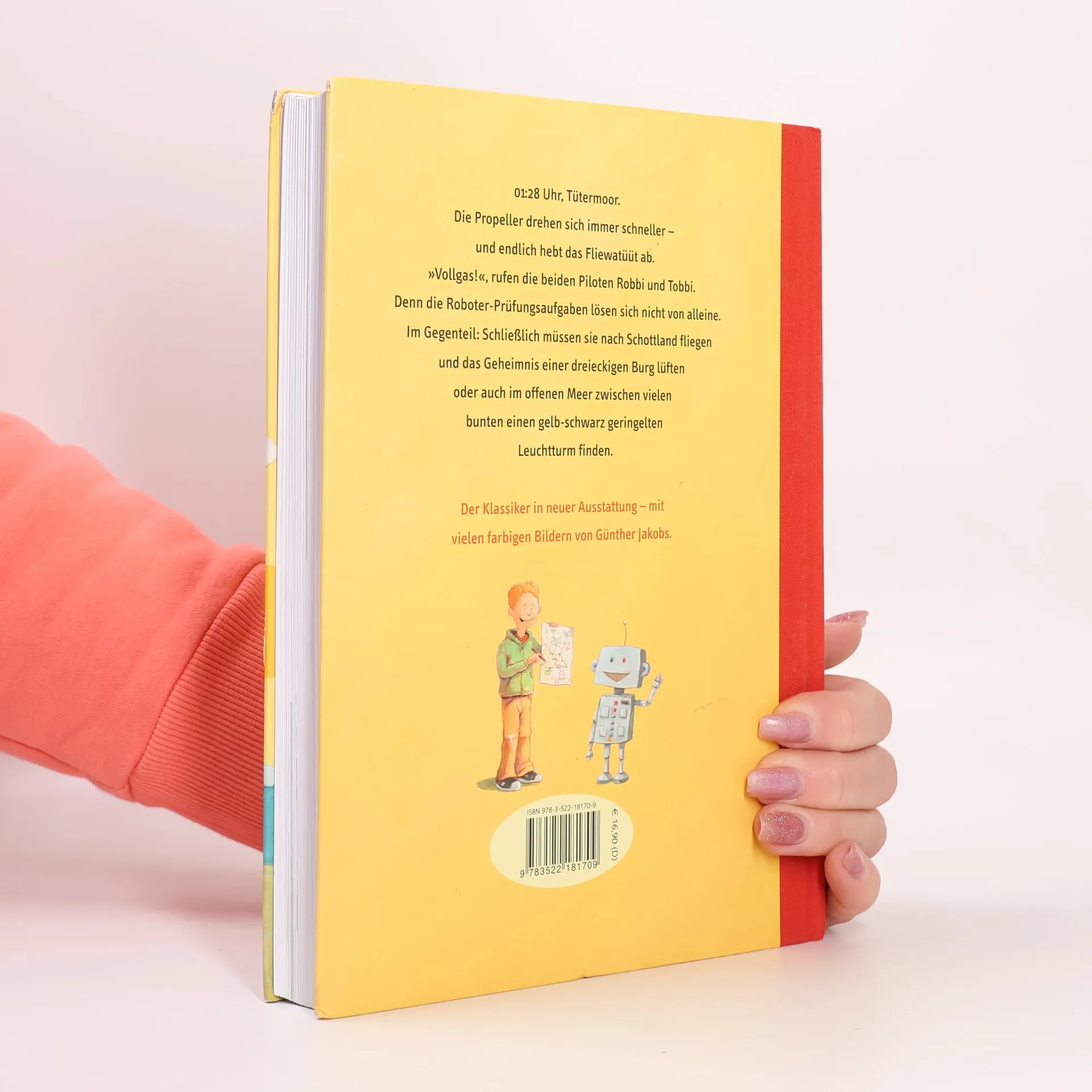 1:28 Uhr, Tütermoor. Die Propeller drehen sich immer schneller - und endlich hebt das Fliewatüüt ab. „Vollgas!“, rufen die beiden Piloten Robbi und Tobbi. Denn die Roboterprüfungsaufgaben lösen sich nicht von alleine. Im Gegenteil: Schließlich müssen sie nach Schottland fliegen und das Geheimnis einer dreieckigen Burg lüften oder auch im offenen Meer zwischen vielen bunten einen gelb-schwarz geringelten Leuchtturm finden. Boy Lornsens Klassiker in neuer Ausstattung - mit vielen farbigen Bildern von Günther Jakobs.