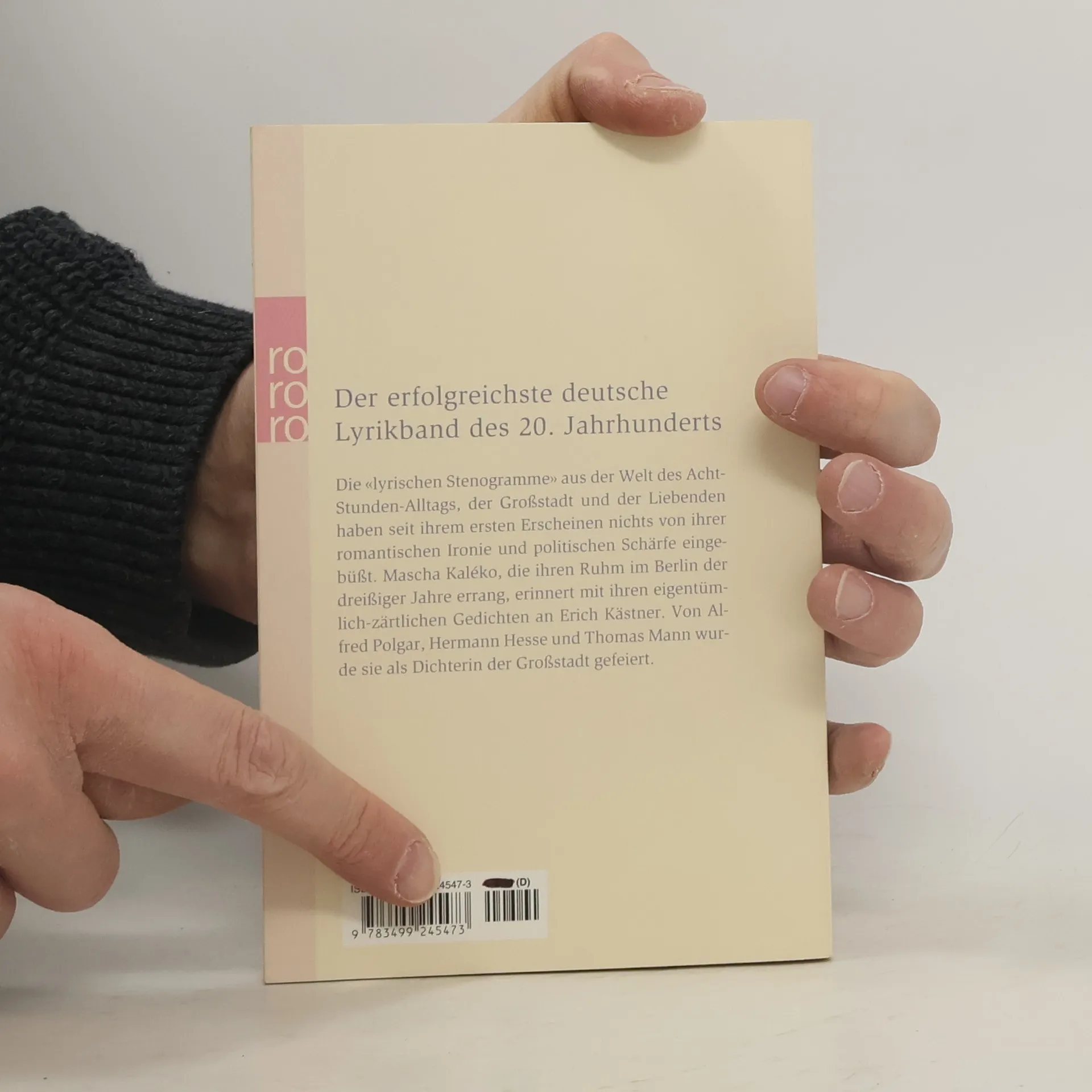 Der erfolgreichste deutsche Lyrikband des 20. Jahrhunderts Die „lyrischen Stenogramme“ aus der Welt des Acht-Stunden-Alltags, der Großstadt und der Liebenden haben seit ihrem ersten Erscheinen nichts von ihrer romantischen Ironie und politischen Schärfe eingebüßt. Mascha Kaléko, die ihren Ruhm im Berlin der dreißiger Jahre errang, erinnert mit ihren eigentümlich-zärtlichen Gedichten an Erich Kästner. Von Alfred Polgar, Hermann Hesse und Thomas Mann wurde sie als Dichterin der Großstadt gefeiert.