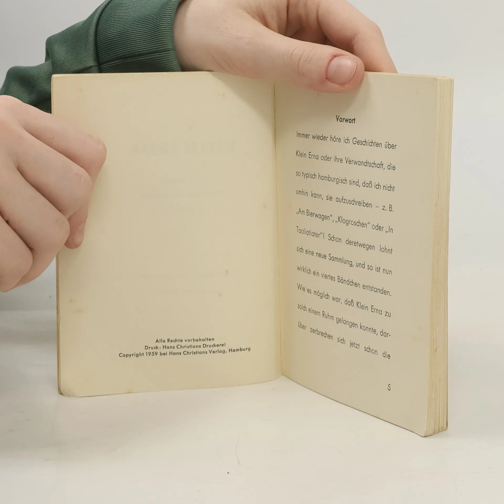Wer kennt sie nicht, die Hamburger Göre „Klein Erna“? Die Geschichten und Witze um das Mädchen werden seit Jahrzehnten von Generation zu Generation weitergegeben. Die Klein Erna-Bücher haben in den letzten fünfzig Jahren eine millionenfache Verbreitung gefunden, auch über die Grenzen der Hansestadt hinaus, und sind bis heute beliebt. Nun sind die „dummen“ Hamburger Geschichten endlich wieder in einem Band verfügbar. „Missingsch“ – das ist Hamburger Volksmund pur. Lokalkolorit zum Lesen – oder zum Hören, wenn Ihnen ein waschechter Hamburger die Geschichten von Klein Erna vorliest. Vera Möller hat die Geschichten nicht erfunden, sie hat sie gesammelt, nacherzählt und liebevoll illustriert. Viel Vergnügen! „Wie ich dazu kam, die Klein Erna-Geschichten zu sammeln? Eigentlich hatte mein Mann die Schuld, er konnte sie so gut erzählen! Er war Segler auf der Alster, und in diesen Seglerkreisen kursierten die dummen Geschichten von der Hamburger Göre , Klein Erna‘! Woher die kamen, konnte mir damals schon keiner genau sagen! Es hieß, daß in Ärztekreisen einige Geschichten in Missingsch erzählt würden, die komische Situationen und Fragen aus dem Volk aufnahmen! So zum Beispiel die Geschichte bei Hagenbeck: , Klein Erna, geh nich so nah ran an die Eisbärn … bist sowiesoo schon so erkältet!‘“ Vera Möller