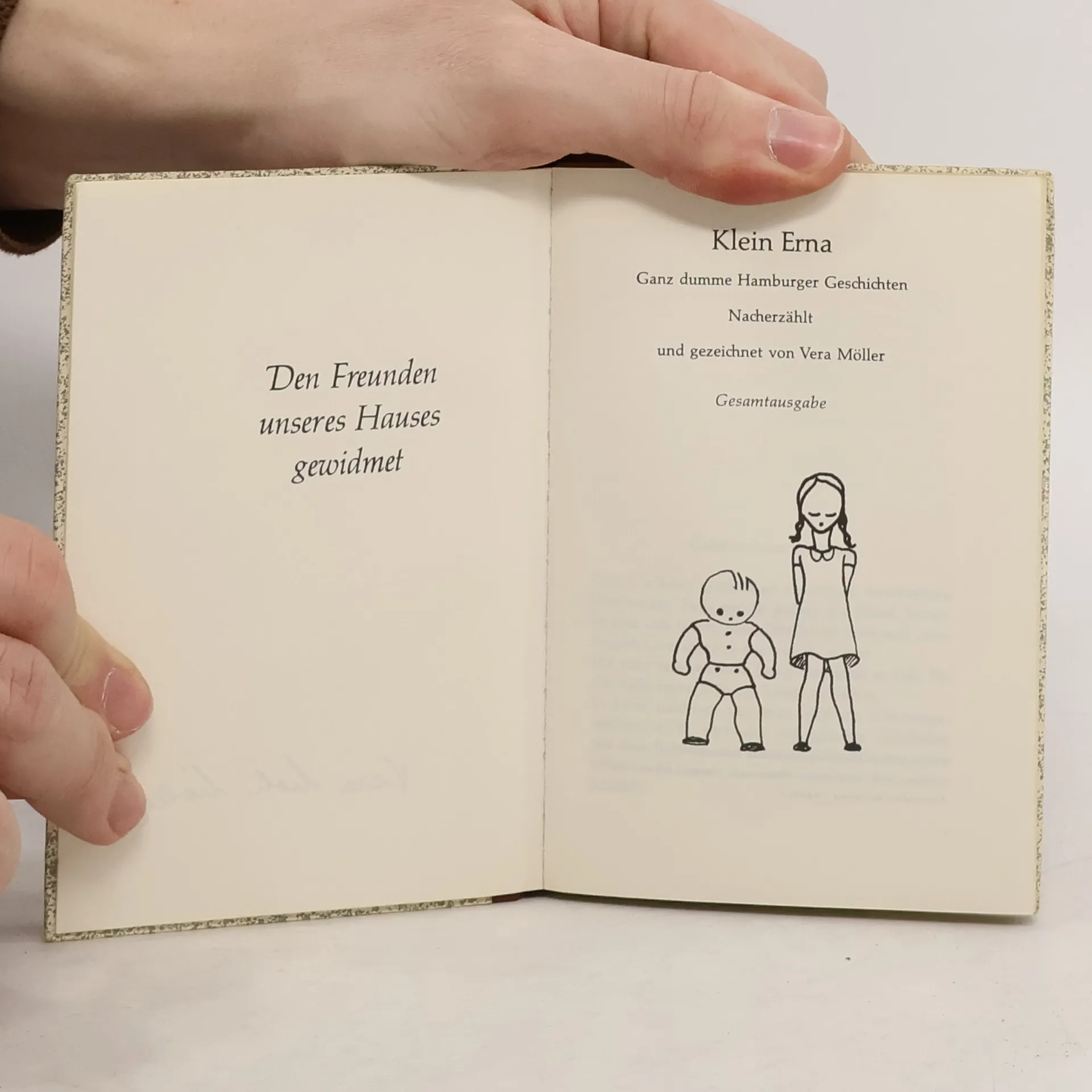 Wer kennt sie nicht, die Hamburger Göre „Klein Erna“? Die Geschichten und Witze um das Mädchen werden seit Jahrzehnten von Generation zu Generation weitergegeben. Die Klein Erna-Bücher haben in den letzten fünfzig Jahren eine millionenfache Verbreitung gefunden, auch über die Grenzen der Hansestadt hinaus, und sind bis heute beliebt. Nun sind die „dummen“ Hamburger Geschichten endlich wieder in einem Band verfügbar. „Missingsch“ – das ist Hamburger Volksmund pur. Lokalkolorit zum Lesen – oder zum Hören, wenn Ihnen ein waschechter Hamburger die Geschichten von Klein Erna vorliest. Vera Möller hat die Geschichten nicht erfunden, sie hat sie gesammelt, nacherzählt und liebevoll illustriert. Viel Vergnügen! „Wie ich dazu kam, die Klein Erna-Geschichten zu sammeln? Eigentlich hatte mein Mann die Schuld, er konnte sie so gut erzählen! Er war Segler auf der Alster, und in diesen Seglerkreisen kursierten die dummen Geschichten von der Hamburger Göre , Klein Erna‘! Woher die kamen, konnte mir damals schon keiner genau sagen! Es hieß, daß in Ärztekreisen einige Geschichten in Missingsch erzählt würden, die komische Situationen und Fragen aus dem Volk aufnahmen! So zum Beispiel die Geschichte bei Hagenbeck: , Klein Erna, geh nich so nah ran an die Eisbärn … bist sowiesoo schon so erkältet!‘“ Vera Möller