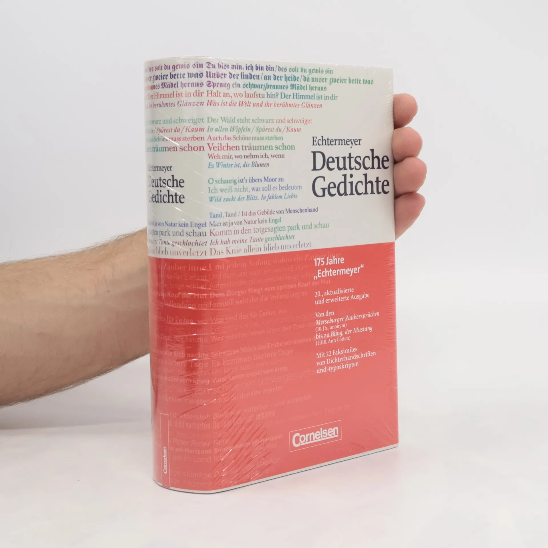 Die Jubiläumsausgabe zum 175. Geburtstag des Echtermeyers ist um 130 Seiten erweitert und punktet mitder Neuaufnahme von 40 Dichter/-innen und 80 Gedichten, einem erweiterten Spektrum von den Merseburger Zaubersprüchen (10. Jahrhundert) bis zu Bling, der Mustang von Ann Cotten (geb. 1982) sowie21 Faksimiles berühmter Dichterhandschriften und -typoskripte, u. a. von Goethe, Nietzsche und Nelly Sachs.