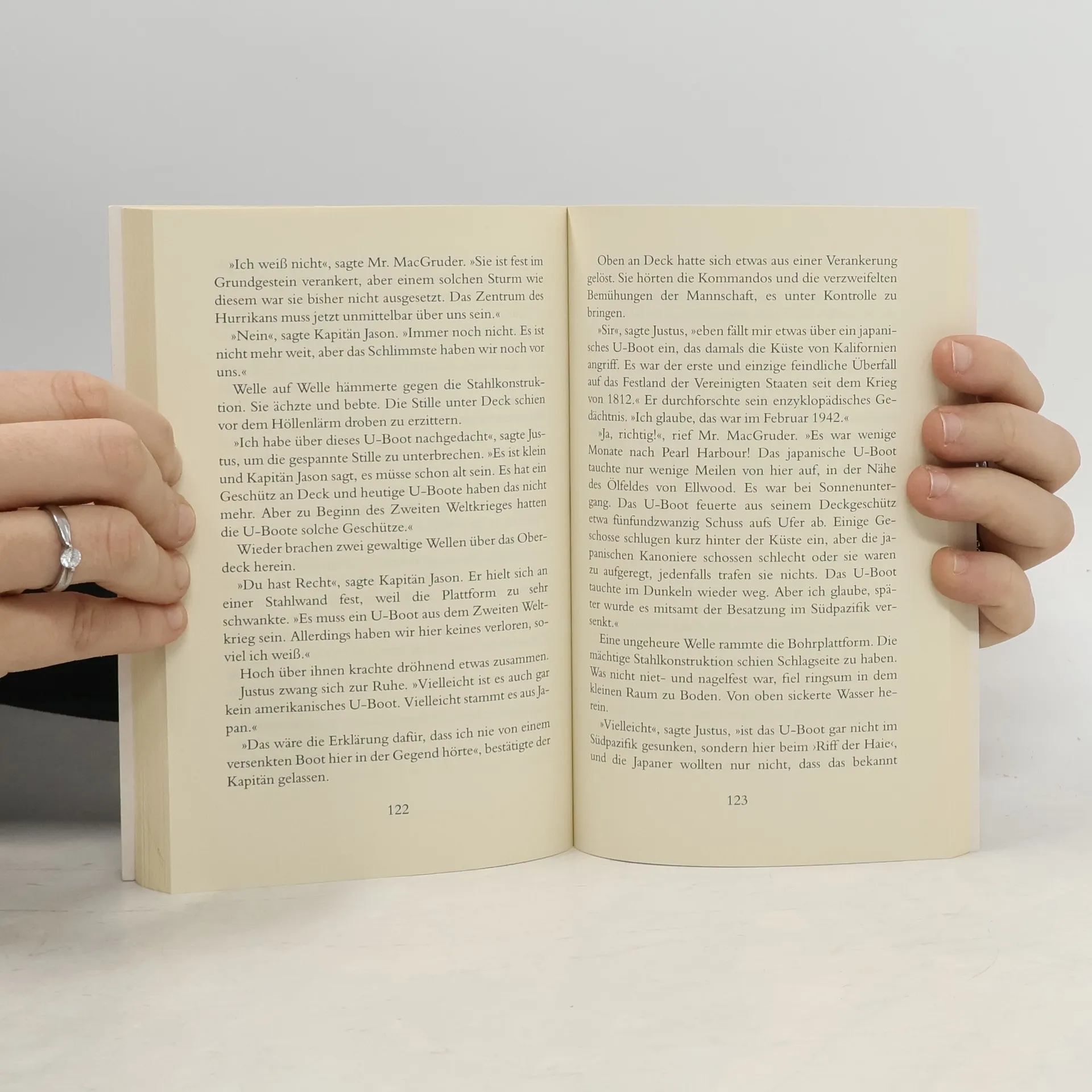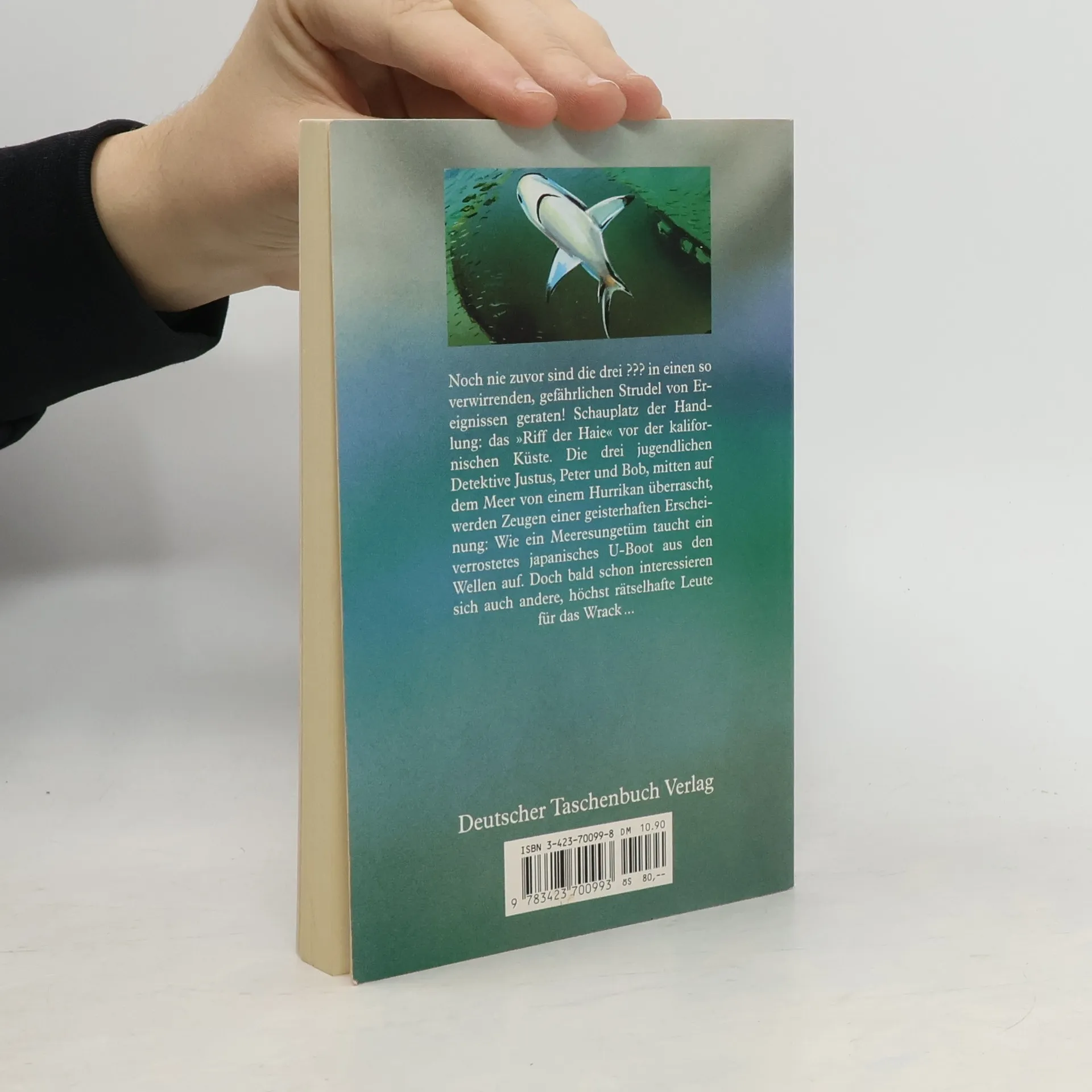 Noch nie zuvor sind die drei ??? in einen so verwirrenden, gefährlichen Strudel von Ereignissen geraten! Schauplatz der Handlungen: das ›Riff der Haie‹ vor der kalifornischen Küste. Die drei jugendlichen Detektive Justus, Peter und Bob, mitten auf dem Meer von einem Hurrican überrascht, werden Zeugen einer geisterhaften Erscheinung: Wie ein Meeresungetüm taucht ein verrostetes japanisches U-Boot aus den Wellen auf. Doch bald schon interessieren sich auch andere, höchst rätselhafte Leute für das Wrack...