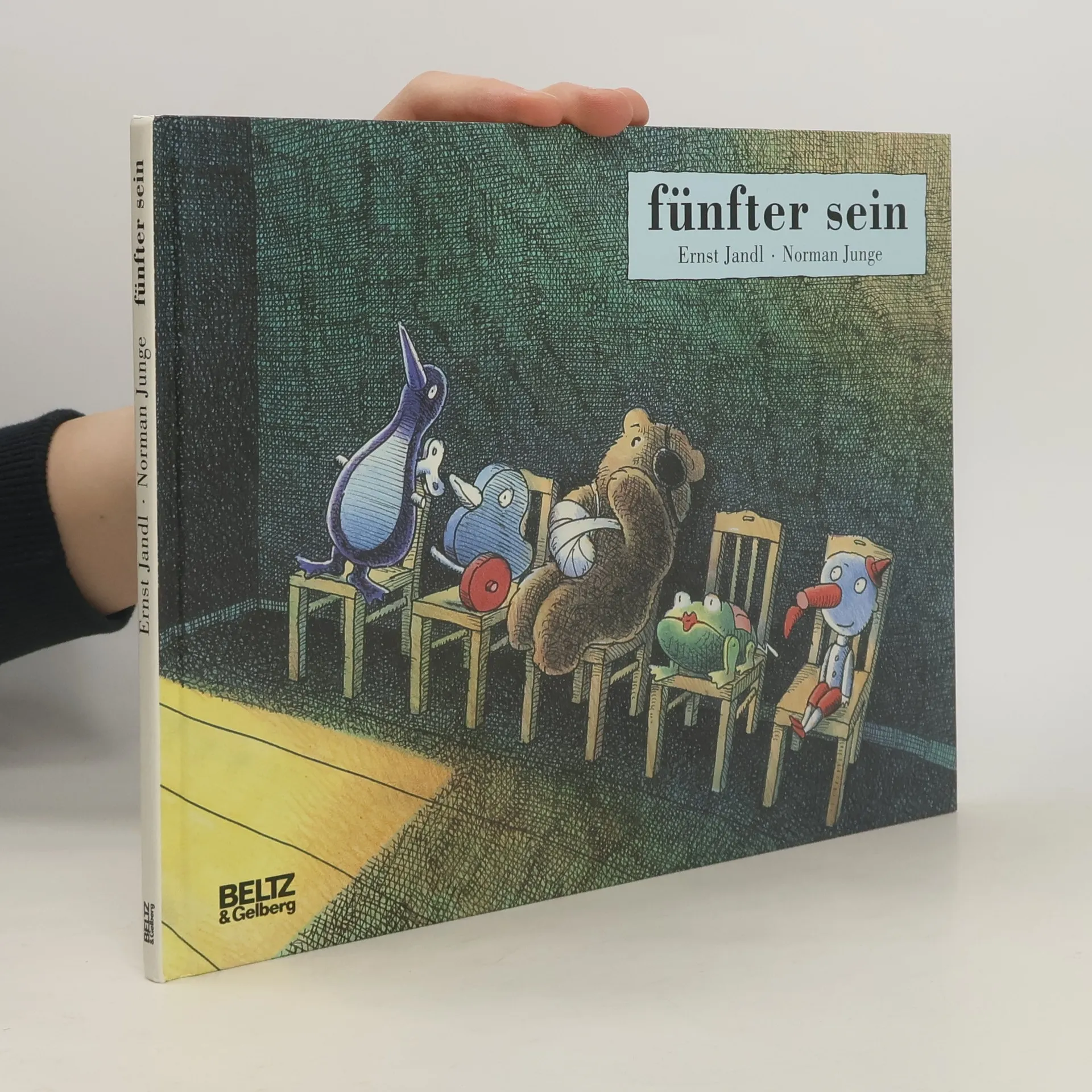 Ein Bilder- und Sammlerbuch: Ein Gedicht des Sprachspielers und Worterfinders Ernst Jandl, kombiniert mit den farbenfrohen und gleichzeitig klaren Zeichnungen Norman Junges. In dem mit dem Bologna-Ragazzi-Preis sowie dem, von Radio Bremen und der Zeit vergebenen, \"Luchs\" ausgezeichneten Fünfter sein geht es eigentlich ganz banal um einen Arztbesuch und das unruhige Gefühl beim Warten im Vorzimmer. Ein Patient nach dem anderen wird behandelt, man selbst rutscht in der Warteschlange unaufhaltsam nach vorne. Was die sparsamen Worte nur andeuten, illustrieren die ausgefeilten, ebenso einfühlsamen wie witzigen Zeichnungen. Der Einsatz von Licht und Schatten, das Mienenspiel der ungewöhnlichen Patienten, die behobenen Krankheiten und, last but not least, die Darstellung des Onkel Doktors machen das Bilderbuch zu einem künstlerisch ansprechenden Sammlerstück. Außerdem ist es bestens dazu geeignet, auch schon ganz kleine Kinder spielerisch auf den Arztbesuch vorzubereiten. Das harmonische und kreative Zusammenspiel von Jandl-Texten und Junge-Bildern kann auch bei folgenden Titeln genossen werden: Antipoden. Auf der anderen Seite der Welt und Immer höher . --Kathrin Rüstig