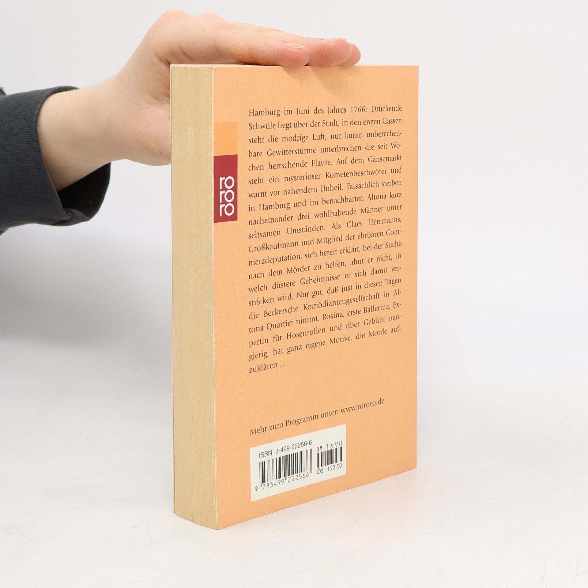 Hamburg im Juni des Jahres 1766: Drückende Schwüle liegt über der Stadt, in den engen Gassen steht die modrige Luft, nur kurze, unberechenbare Gewitterstürme unterbrechen die seit Wochen herrschende Flaute. Auf dem Gänsemarkt steht ein mysteriöser Kometenbeschwörer und warnt vor nahendem Unheil. Tatsächlich sterben in Hamburg und im benachbarten Altona kurz nacheinander drei wohlhabende Männer unter seltsamen Umständen. Als Claes Herrmanns, Großkaufmann und Mitglied der ehrbaren Commerzdeputation, sich bereit erklärt, bei der Suche nach dem Mörder zu helfen, ahnt er nicht, in welch düstere Geheimnisse er sich damit verstricken wird. Nur gut, dass just in diesen Tagen die Beckersche Komödiantengesellschaft in Altona Quartier nimmt. Rosina, erste Ballerina, Expertin für Hosenrollen und über Gebühr neugierig, hat ganz eigene Motive, die Morde aufzuklären…
