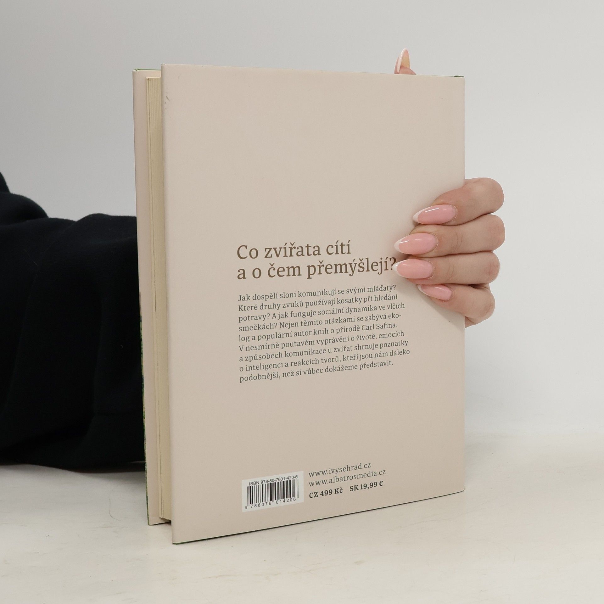 Jak dospělí sloni komunikují se svými mláďaty? Které druhy zvuků používají kosatky při hledání potravy? A jak funguje sociální dynamika ve vlčích smečkách? Nejen těmito otázkami se zabývá ekolog a populární autor knih o přírodě Carl Safina. V nesmírně poutavém vyprávění o životě, emocích a způsobech komunikace u zvířat shrnuje poznatky o inteligenci a reakcích tvorů, kteří jsou nám daleko podobnější, než si vůbec dokážeme představit.